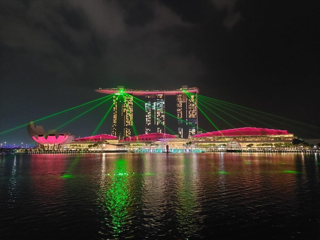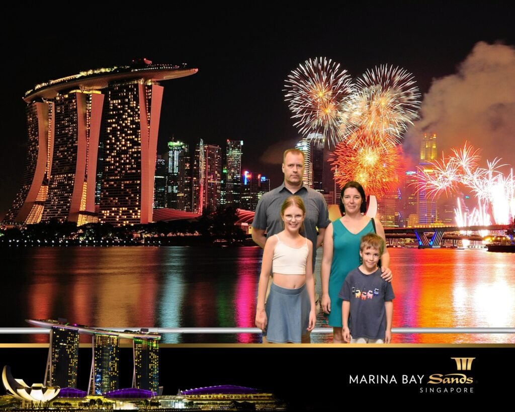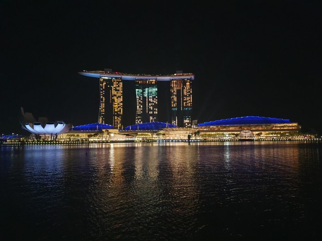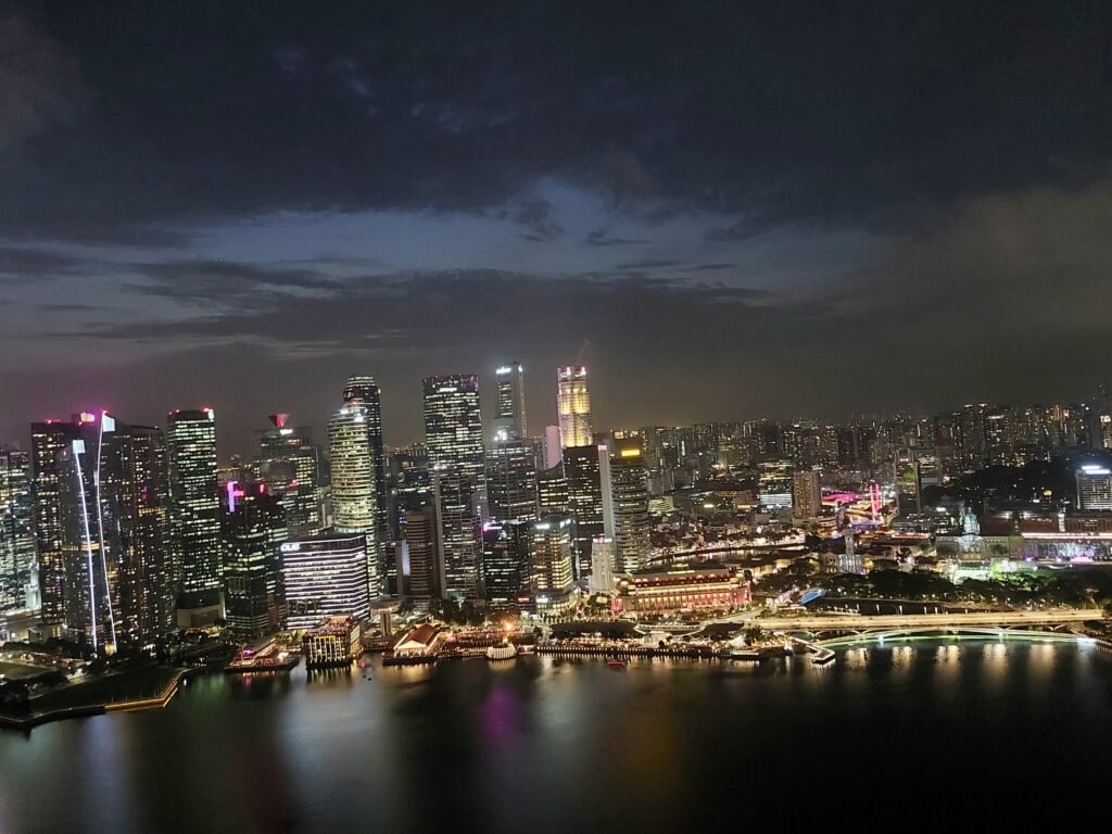 Pikku Intiasta kävelimme muutaman kilometrin päässä sijaitsevalle bussiasemalle. Kävimme ostamassa sieltä meille liput seuraavaksi päiväksi Kuala Lumpuriin lähtevään bussiin. Bussiasemalla lapsille yllätti vessahätä, eikä siinä auttanut muu kuin mennä tutustumaan paikalliseen vessakulttuuriin. Reikä lattiassa oli molemmille lapsille melkoinen hirvitys, mutta niin vain saivat molemmat lapset asiansa hoidettua. Tosin Risto sanoi säästävänsä kakkoshädän seuraavaan, vähän tasokkaampaan vessaan. Ronja ihmetteli kovasti sitä, miten tuollaisessa vessassa käynnistä piti vielä maksaakin 20 paikallista senttiä. Vessakäynti oli molemmille lapsille ilmeisen vaikuttava kokemus, sillä he jatkoivat keskustelua tästä elämyksestä koko metromatkan ajan Marina Bay Sands –hotellille ja sen 56. kerroksessa sijaitsevalle näköalatasanteelle. Maisemat olivat huikeat! Näköalatasannetta ylempänä oli vielä yksi kerros, mutta se oli vain siellä sijaitsevan ravintolan asiakkaille. Koska yksi kahden hengen huone maksaa tässä hotellissa noin 600€, tuumimme, että meidän matkabudjettimme ei riitä ravintolassa käymiseen. Niinpä tyydyimme ostamaan rahvaalle tarkoitetusta pikkukioskista sipsejä ja lapsille alkoholittomat Singapore Slingit. Kun olimme ihailleet Singaporea yövalaistuksessa yläilmoista käsin, palasimme metrolla China Towniin kapseloitumaan yöksi.