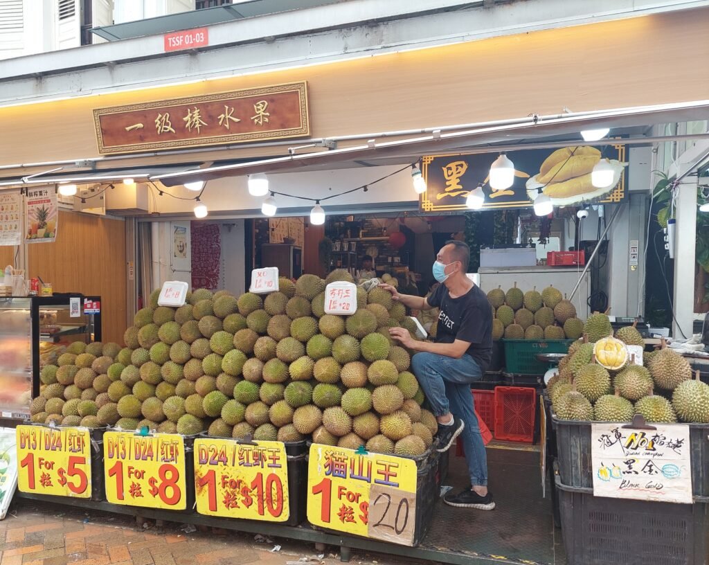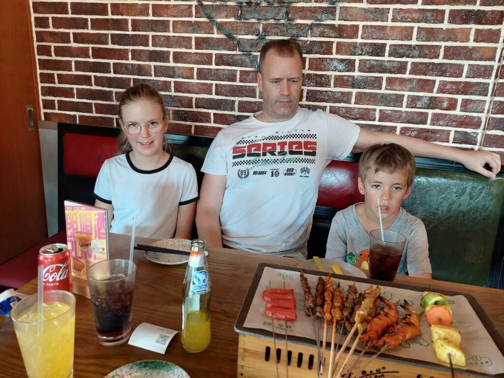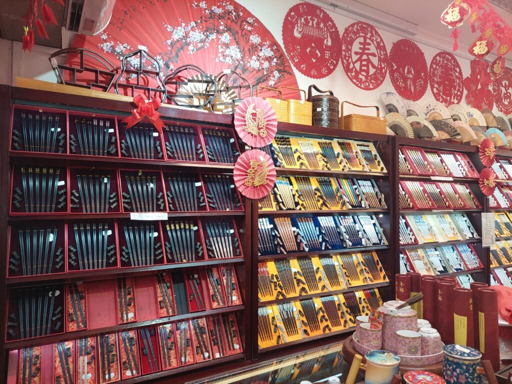 Aamiaisen jälkeen hyppäsimme metroon ja lähdimme ihmettelemään menoa Singaporen China Townissa. Durianin voimakas haju iski vasten kasvoja heti metrosta ulos noustessa, vaikka kasvoilla oli vielä maski. (Singaporen metrossa on edelleen pakollista käyttää maskia.) Kiertelimme China Townin kaduilla ja kurkistelimme erilaisiin myyntikojuihin. Eräästä syömäpuikkoihin erikoistuneesta pikkukaupasta ostimmekin lapsille omat syömäpuikot. Ne oli kiinnitetty toisesta päästä yhteen syömisen helpottamiseksi. Lounaan nauttiminen kiinalaisessa ravintolassa omia puikkoja käyttäen onnistuikin jo tosi hyvin molemmilta lapsilta. Puikkokaupan myyjä kertoi meille, että täällä lapset aloittavat puikoilla syönnin harjoittelun parivuotiaana. Heillä on aluksi puikot, joissa sormille on omat pidikkeensä sen lisäksi, että ne ovat kiinni toisissaan toisesta päästä. Näin lapset oppivat oikean otteen, ja voivat siirtyä siitä pikkuhiljaa seuraaviin puikkoihin. Kävimme myös piipahtamassa temppelissä, jossa ainakin tekstin mukaan piti olla jossakin Buddhan hampaan pyhäinjäännös. Monta buddhapatsasta kyllä näimme, mutta hampaasta ei ollut tietoakaan.