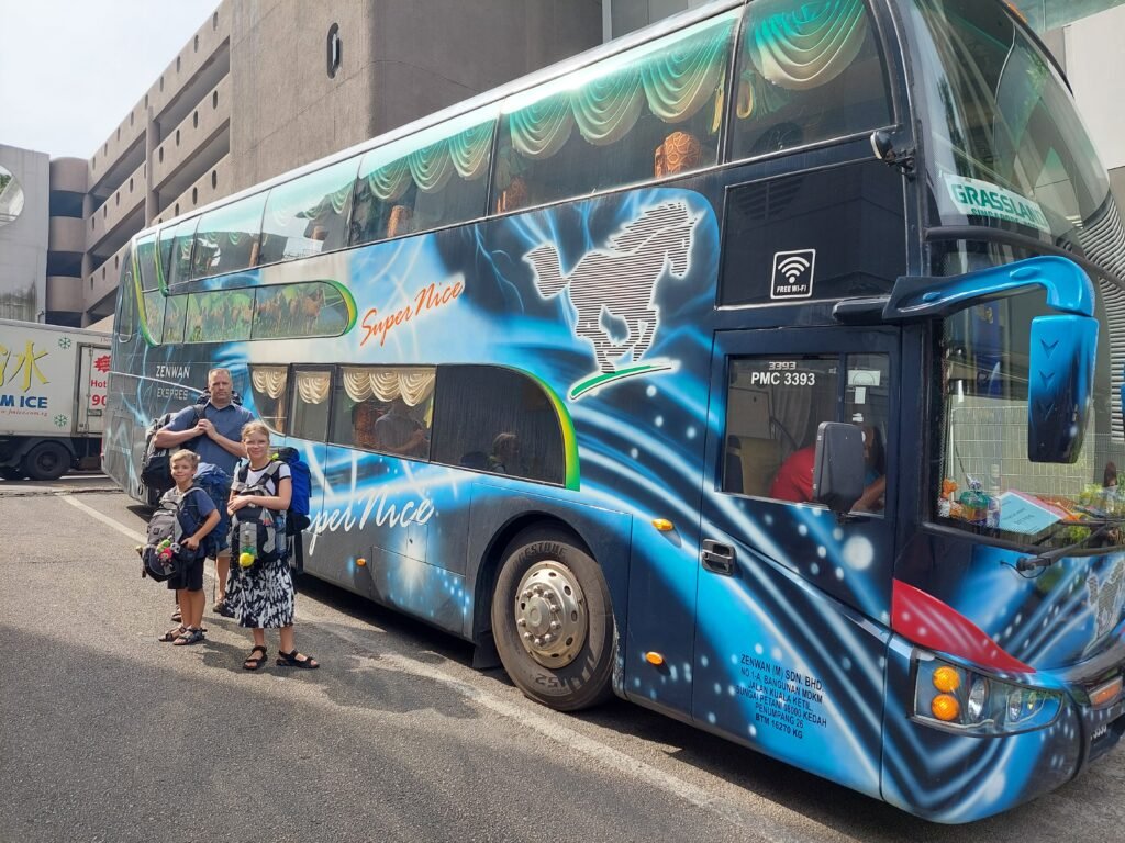 Kapseleissa sai nukutuksi yllättävän hyvin. Tosin Marko joutui nukkumaan jalat koukussa, koska oli kapseliin hieman ylimittainen. Ilmeisesti kapselit oli mitoitettu enemmän aasialaiselle asiakaskunnalle. Täälläkään paikassa ei ollut tarjolla teetä ja kahvia kummempaa aamiaista, joten söimme edellisenä iltana ostamamme jugurtit ja jatkoimme taksilla matkaa bussiasemalle. Bussi olikin vähän toista luokkaa kuin Suomen pitkänmatkanbussit. Istuimet olivat todella leveät ja pehmeät. Niistä löytyi kaksi erillistä säädettävää jalkatukea ja säädettävä selkänoja. Vähän kuin olisi nojatuoliin istunut. Jalkatilaakin oli todella reilusti. Lisäksi ilmastointi pelasi hyvin, joten kuusituntinen matka Kuala Lumpuriin sujui bussin kyydissä mukavasti.
