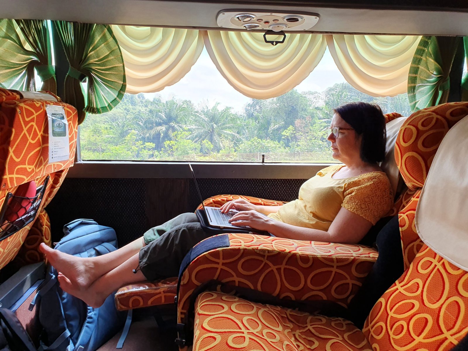 The bus was really nice and comfortable. The reclining seats were super soft and wide. They had two adjustable foot rests too. There was a lot of space between your chair and the one in front of you, so even Marko had enough space for him to sit and rest.