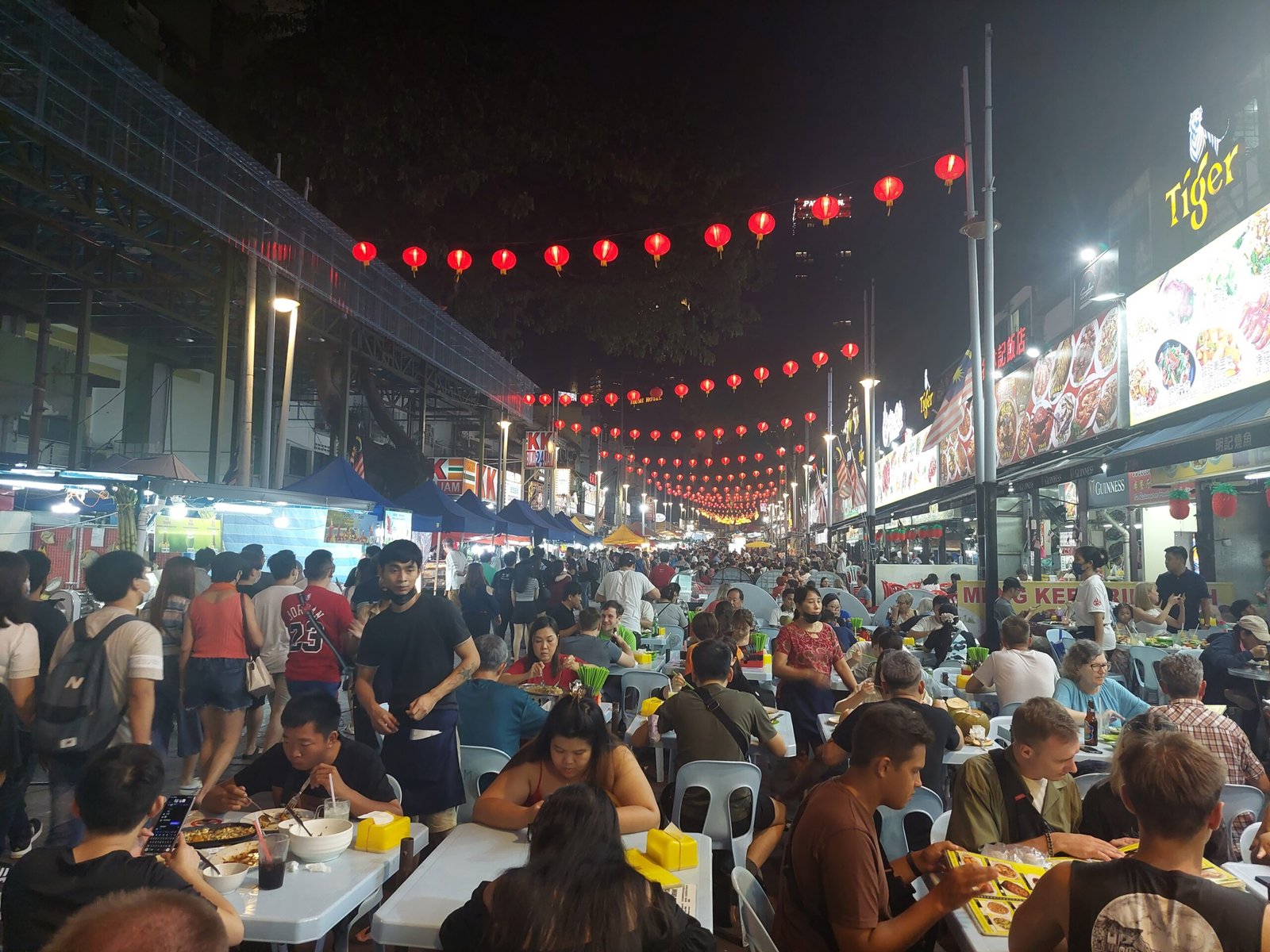In the afternoon we experienced our first thunder storm here. It was very brief, but for a while the view from our window was somewhat blurry. In Finland the rain makes air fresh, but here it just becomes more hot and humid. We noticed that when we walked the two kilometres to the Jalan Alor food street.