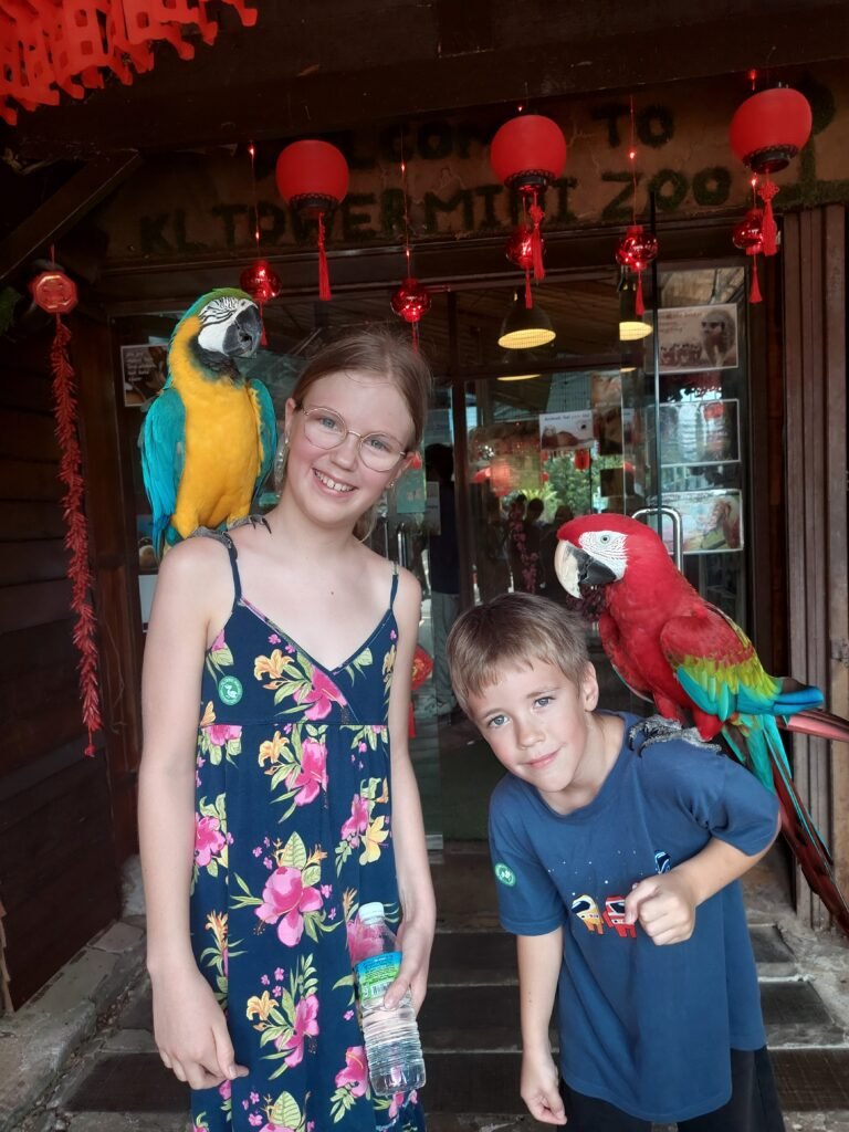On Sunday we visited KL tower. Fortunately the lift was working, because it would have been quite a climb with 2058 steps. There were hardly any other tourists there, so we had a great time spotting different buildings from the height of 300 meters. We spotted the world’s second tallest building called Merdeka and also our swimming pool. The tallest building Burj Khalifa we had seen in Dubai already, but the third largest skyscraper is in China, so we’ll give that a miss.