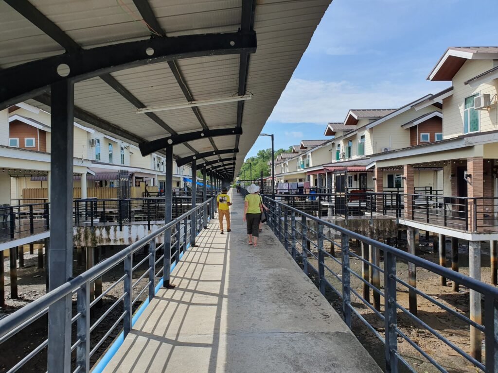 We started our walk from the older part of the village. There the wooden bridges are full of holes and some of the planks are really rotten. You also have to watch out for the cat poo that is everywhere. (For some reason they have a lot of cats there.) The new part of the village is in a better shape. The bridges are made of concrete and the houses look more modern and comfortable too. In the village there are sport “fields” for sepak takraw, an outdoor gym, police station, fire department, school and of course a mosque. There are no proper shops in the village, so for the groceries people have to take a boat ride to the mainland. We also asked about the sewage system in the village. Turns out that in the older part of the village all the turds go straight to the river, but in the new part they do have some sort of a sewage system. We have to remember this when they’re offering us “a catch of the day” in a local restaurant…