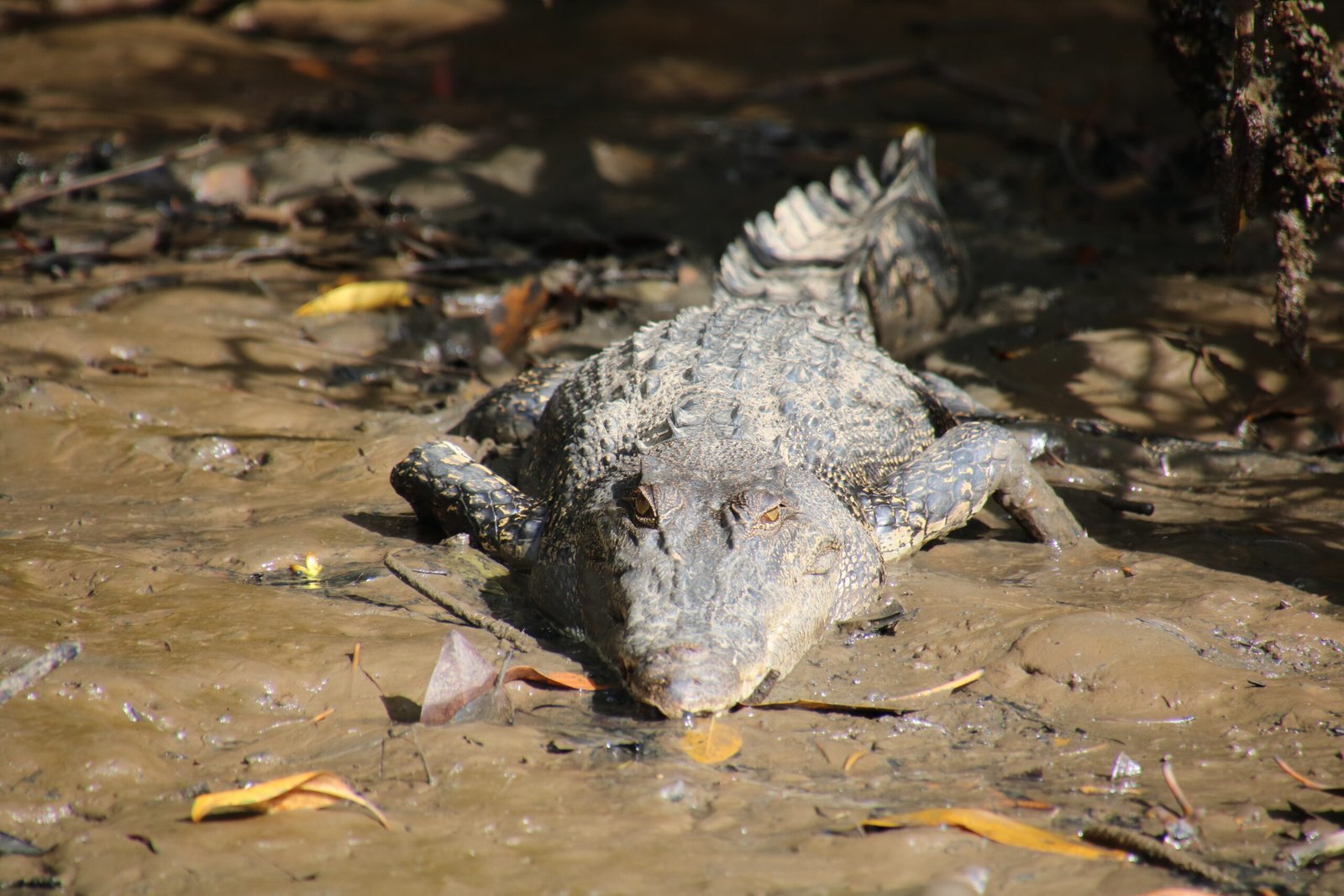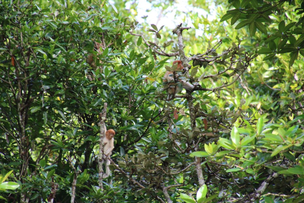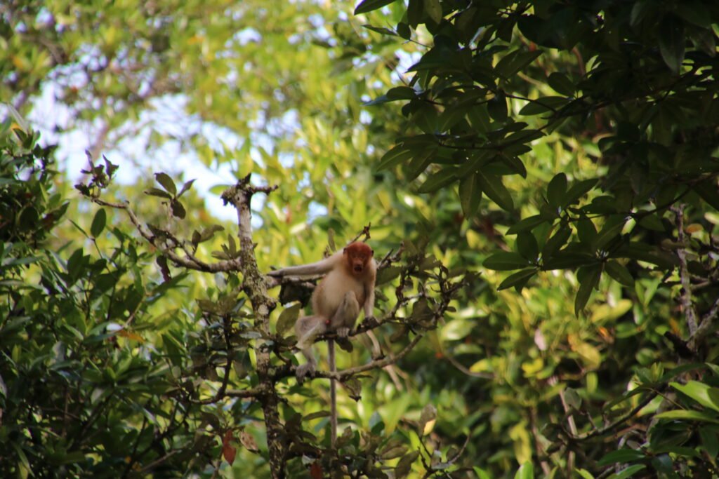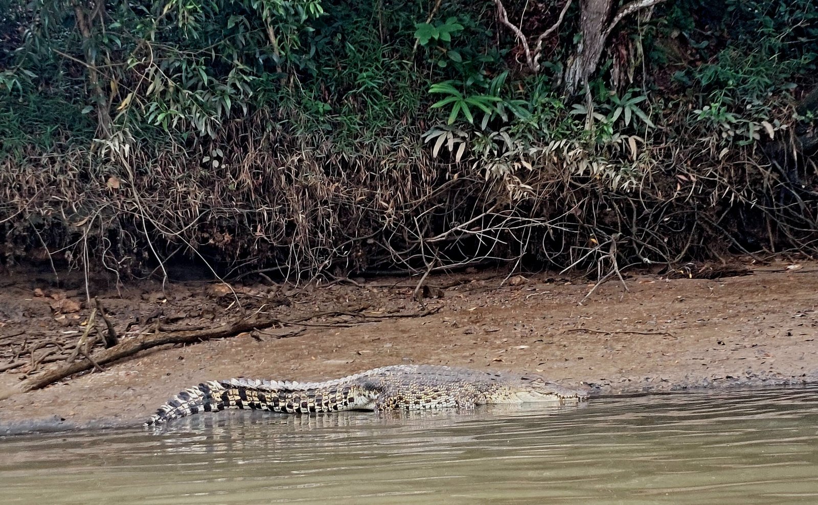 Suuntasimme ensin mangrovemetsän keskellä kiemurtelevalle joenpätkälle, jossa bongasimme joenpenkalta köllöttelemästä 17 krokotiilia, 11 varaania, erilaisia lintuja sekä nenäapinoita. Joen vesi oli todella matalalla, joten välillä jouduimme ajelemaan jokea pitkin todella hitaasti, ettemme olisi törmänneet salakavaliin uppotukkeihin tai pohjan kiviin. Veneretkellä kohtasimme myös kalastajan, joka oli kokemassa verkkojaan. Saaliiksi tuli jättikatkarapuja sekä ainakin yksi piikikäs ja myrkyllinen arguskala. Sen selkäevistä saatu pisto aiheuttaa voimakasta kipua pariksi päiväksi. Tappavan myrkyllinen se ei ilmeisesti kuitenkaan ole.