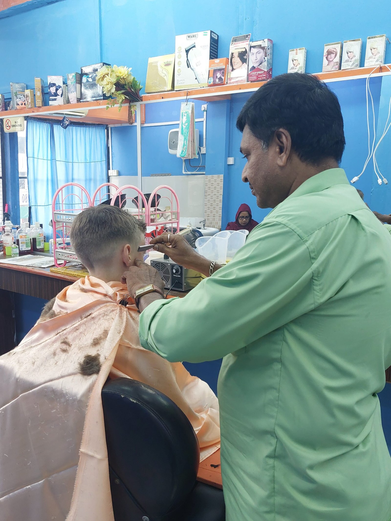 Viimeisen päivän Bruneissa käytimme pyykkien pesuun ja koulutehtävien tekemiseen. Risto halusi myös komistautua ennen lentoa Filippiineille, joten hän käväisi kolmella dollarilla (2€) leikkauttamassa itselleen uuden lookin naapurissa olevassa parturiliikkeessä. Yhteistä kieltä ei juuri ollut, mutta mielettömällä tuurilla (tai parturin osaavalla silmällä katsottuna) Risto sai itselleen juuri sellaisen leikkauksen hiuksiinsa, kuin halusi. Kyllä nyt kehtaa lähteä valloittamaan uutta maata!