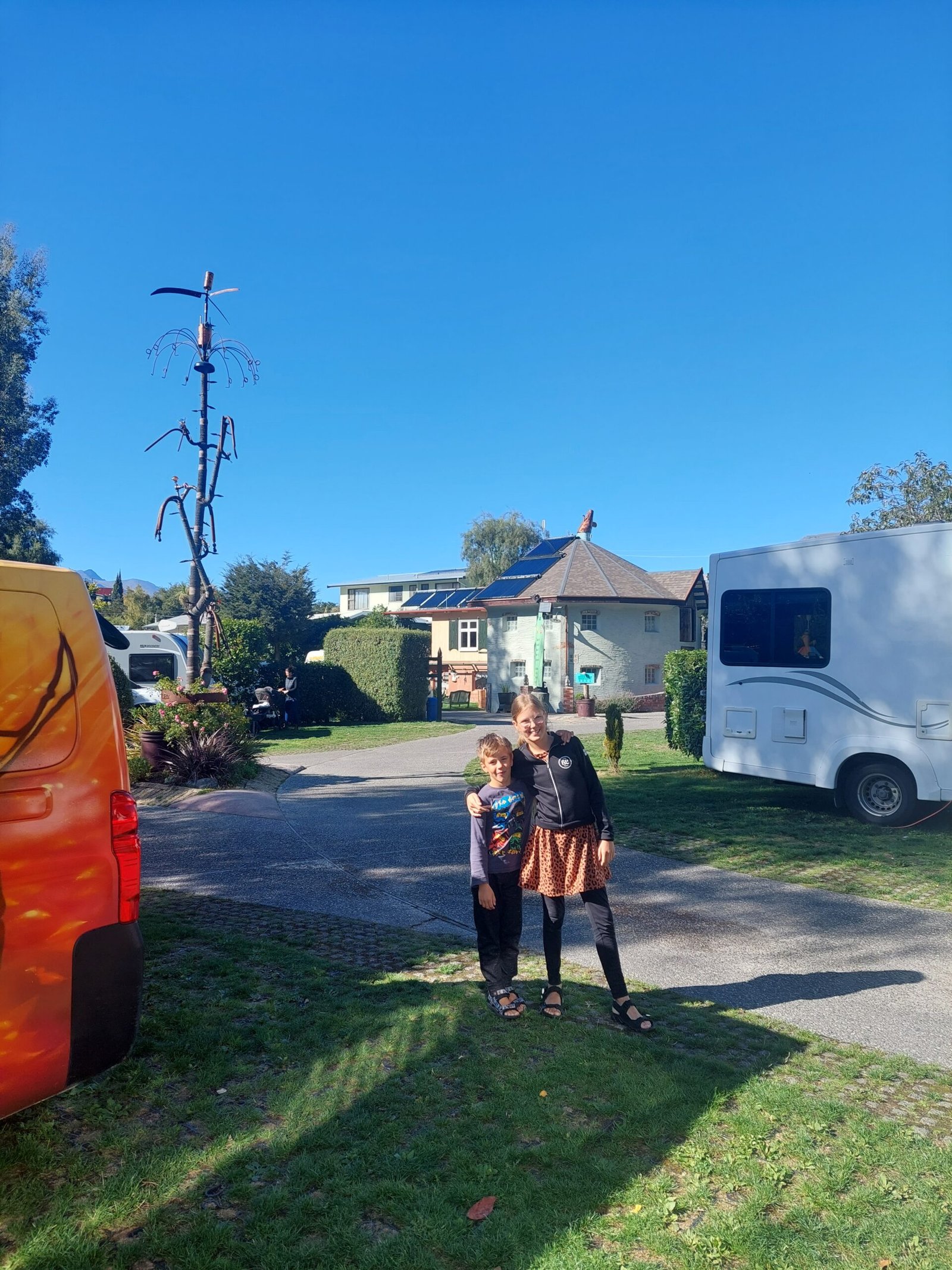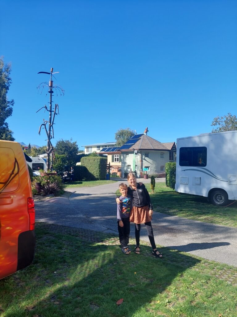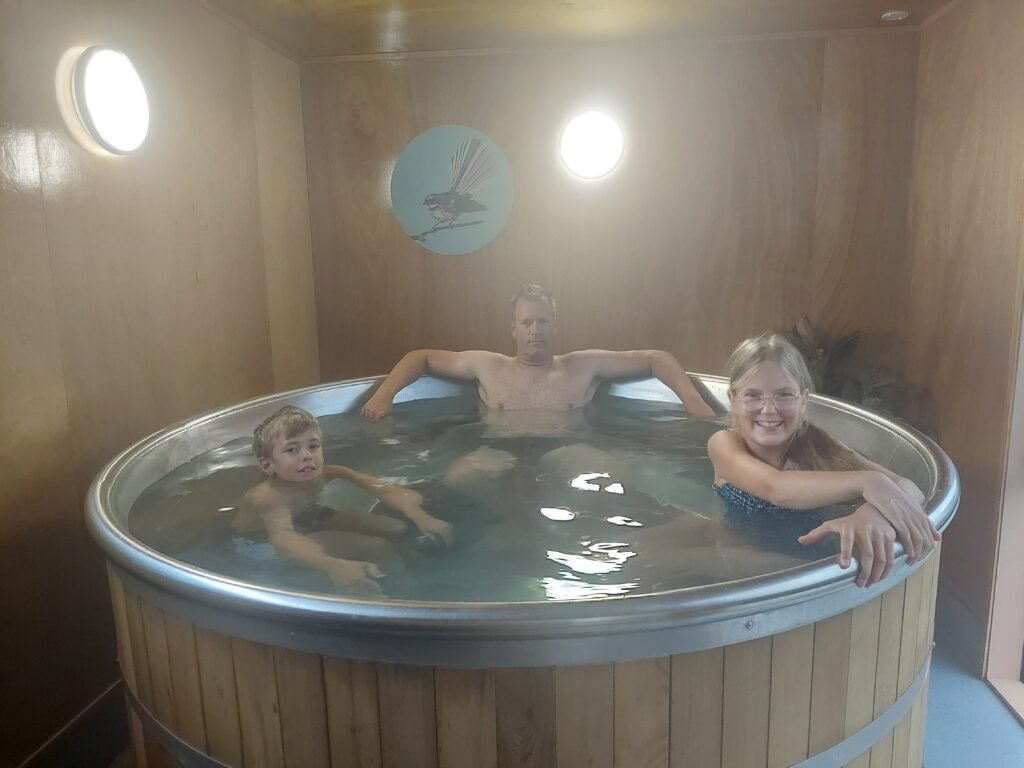 Alunperin olimme ajatelleet lähtevämme seuraavaksi gondolilla ylös yhdelle Queenstownia ympäröivistä vuorista, mutta sää päätti toisin. Koska alkoi sataa vettä, ajoimmekin suoraan leirintäalueelle ja lapset ryhtyivät kouluhommiin. Koska olimme aiemmin liittyneet Top 10 –leirintäalueketjun jäseniksi, saimme tällä kertaa ilmaisen paljuvuoron leirintäalueella käyttöömme. Ensin vähän ihmettelimme, miksi vuoro oli vain puolen tunnin mittainen, mutta kun astuimme paljuun, ymmärsimme syyn heti. Vesi oli niin kuumaa, että puolta tuntia kauempaa siellä ei olisi mitenkään hikoilematta pystynyt olemaan.