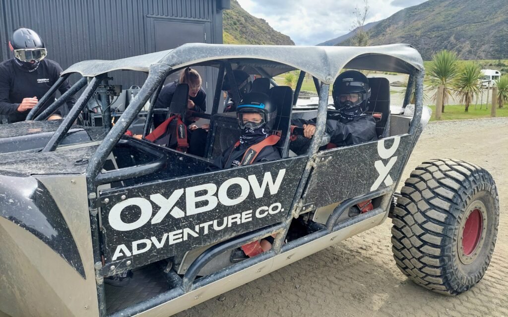 The car wasn’t just an ordinary car either, but with this four-wheel drive you could drive up and down really steep slopes. Sometimes the car would go at an almost 90 degree angle along the side of a mountain. It was also reasonably easy to drive over big boulders. So it was a similar ride to the Hägglund in Christchurch, but at a slightly different speed. At the end of the ride, the driver took the car for a few more laps to spin a doughnut before turning back into the car park. Risto got the front seat on this ride as well. He was super happy about that.
