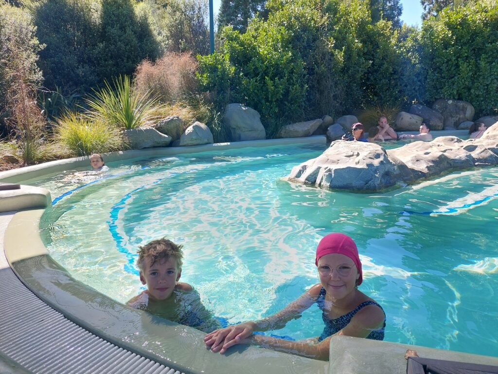 Lauantaina matka jatkui Hokitikasta ensin Hanmer Springsiin. Päädyimme viettämään siellä pari yötä, sillä paikassa sijatsi Hanmer Springs Thermal Pools –niminen paikka. Se tiesi lillumista lämpimissä vesissä pariksi päiväksi meille kaikille.