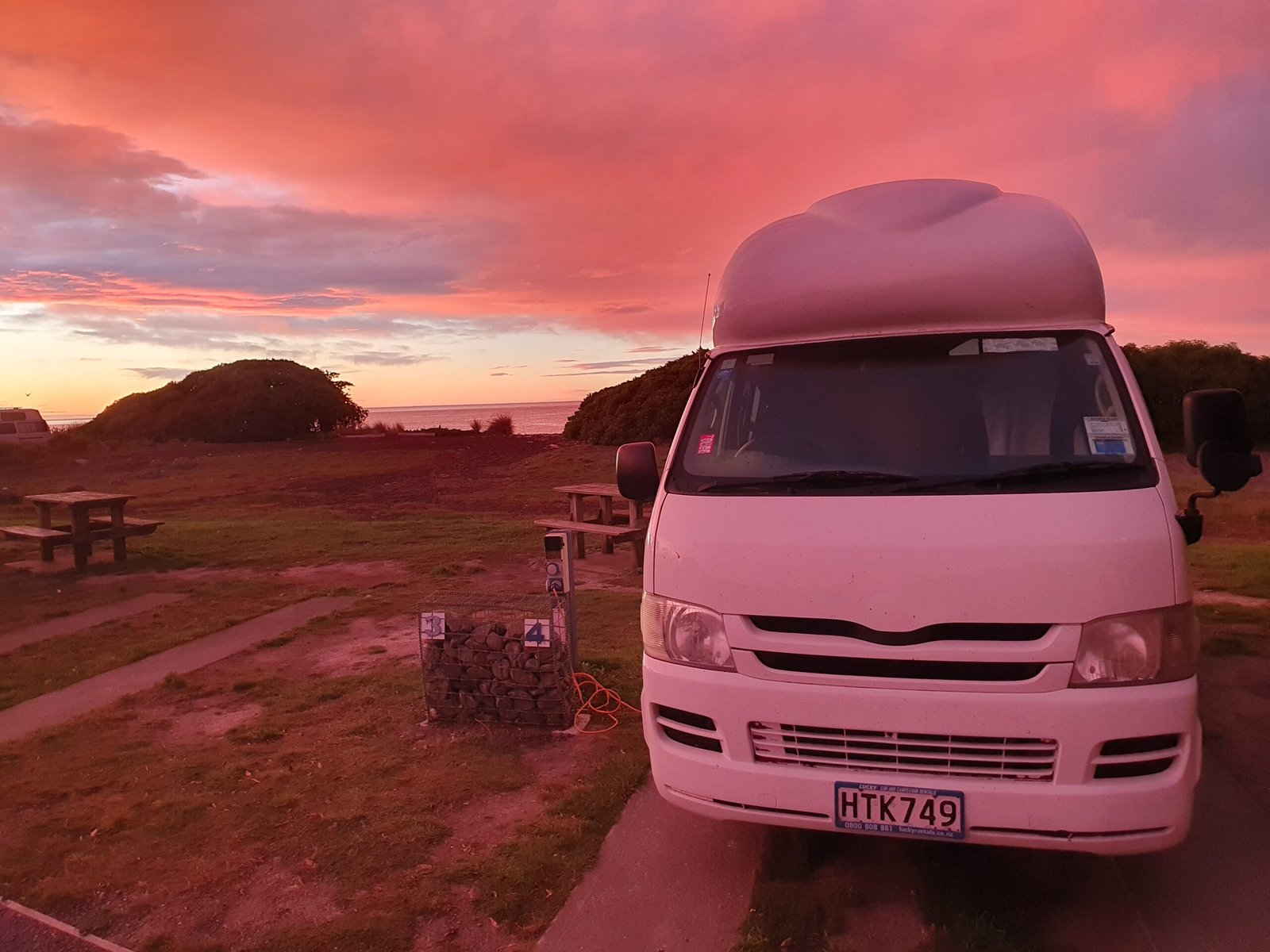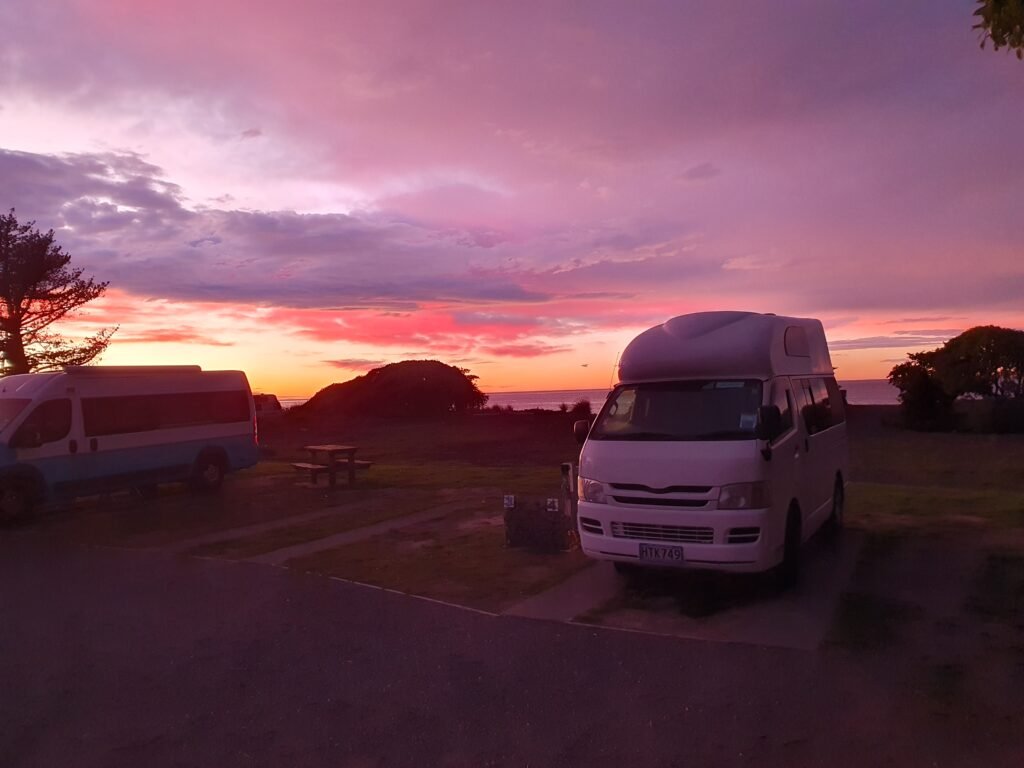Kaikourassa majoituimme leirintäalueelle aivan merenrantaan. Nukkumaan mennesä aaltojen kohina kuuluikin autoon sisälle saakka. Myös tähtitaivas oli aivan uskomaton. Linnunratakin erottui todella selvästi. Jaana jopa onnistui bongaamaan taivaalta tähdenlennon, mutta ei kyllä ehtinyt toivoa mitään, ennen kuin se oli jo ohitse.