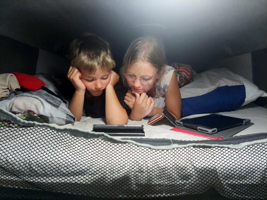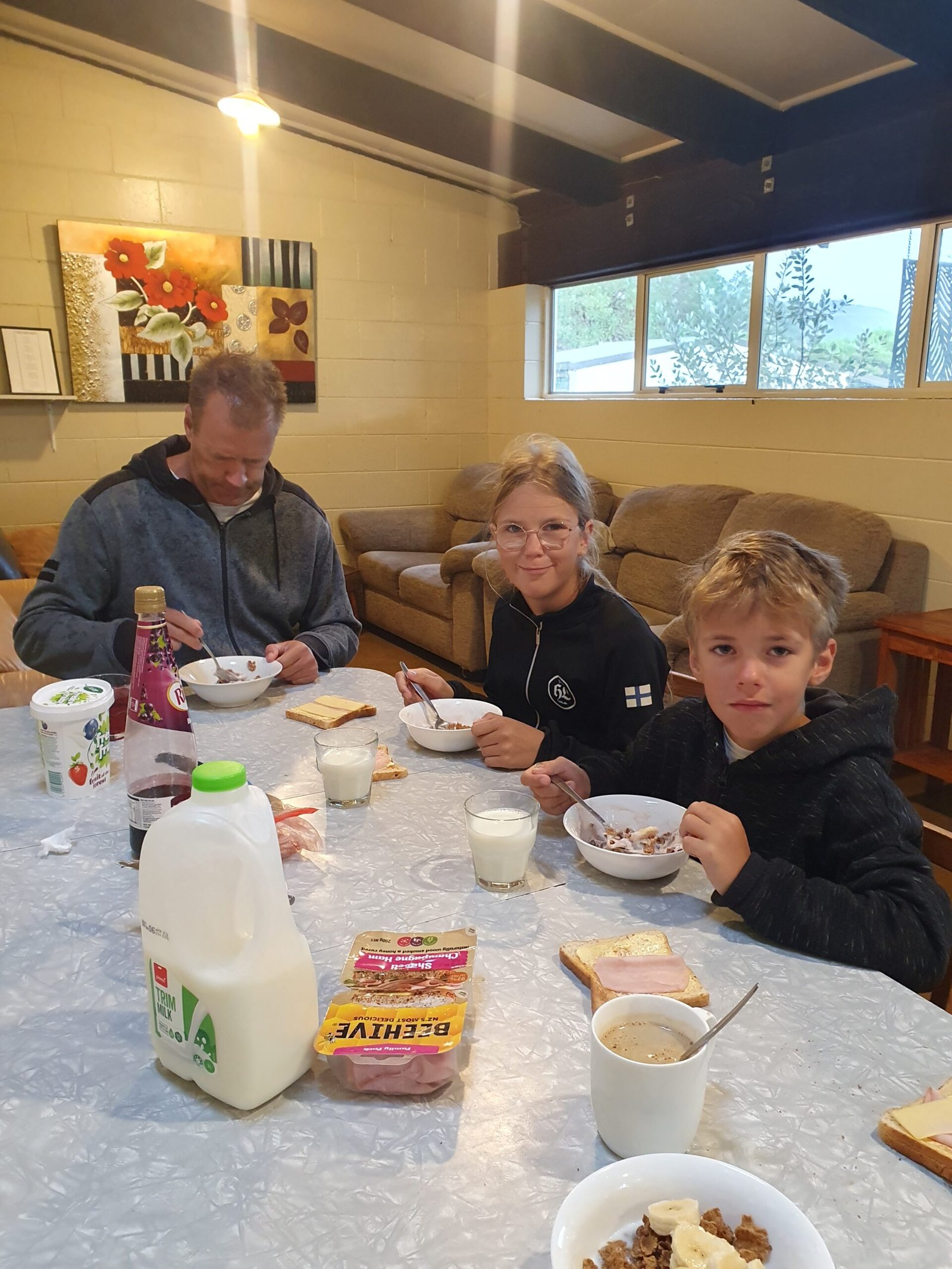 The next morning it started to rain in Kaikoura and it continued to rain the whole day. To make matters worse, the electricity at the campsite was out until the late afternoon, so we all went to the Kaikoura library. The library was very well equipped. At first we did some school work with the children, but they also had time to do other things in the library too. Ronja especially enjoyed the library visit.
