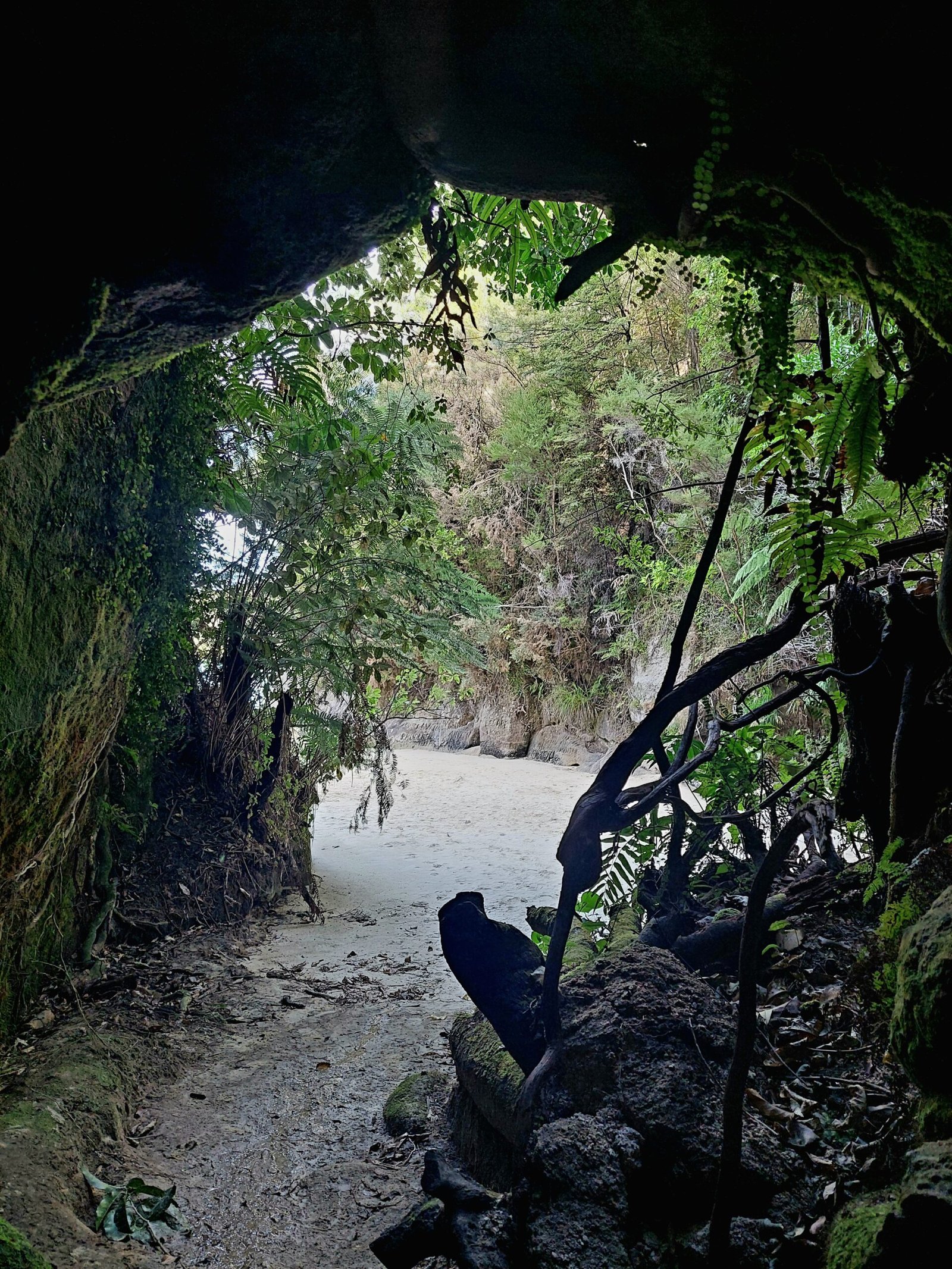 Kun palasimme Anchorage Bayhin, söimme eväät rannalla, jonka jälkeen lapsille jäi vielä aikaa leikkiä siellä. Juuri ennen kuin vene tuli hakemaan meitä takaisin Kaiteriteriin, käväisimme vielä rannan perällä olevissa pienissä luolissa. Sinne kun pääsi kätevästi jalkaisin, koska oli laskuvesi. Luolat olivat jo sellaisenaan jännittäviä, mutta erityisesti Ronjalle jännitystä lisäsivät toisen luolan katossa majailevat niveljalkaiset otukset. Emme koskaan saaneet selville, mitä nuo ravun ja hämähäkin sekoitukselta näyttävät rotikaiset olivat, mutta suurin niistä oli kyllä todella miehekkään kokoinen. Sen nähdessään Ronja säntäsi kiljuen ulos luolasta samantien. Siinä oli kuulkaa satasen SE lähellä!