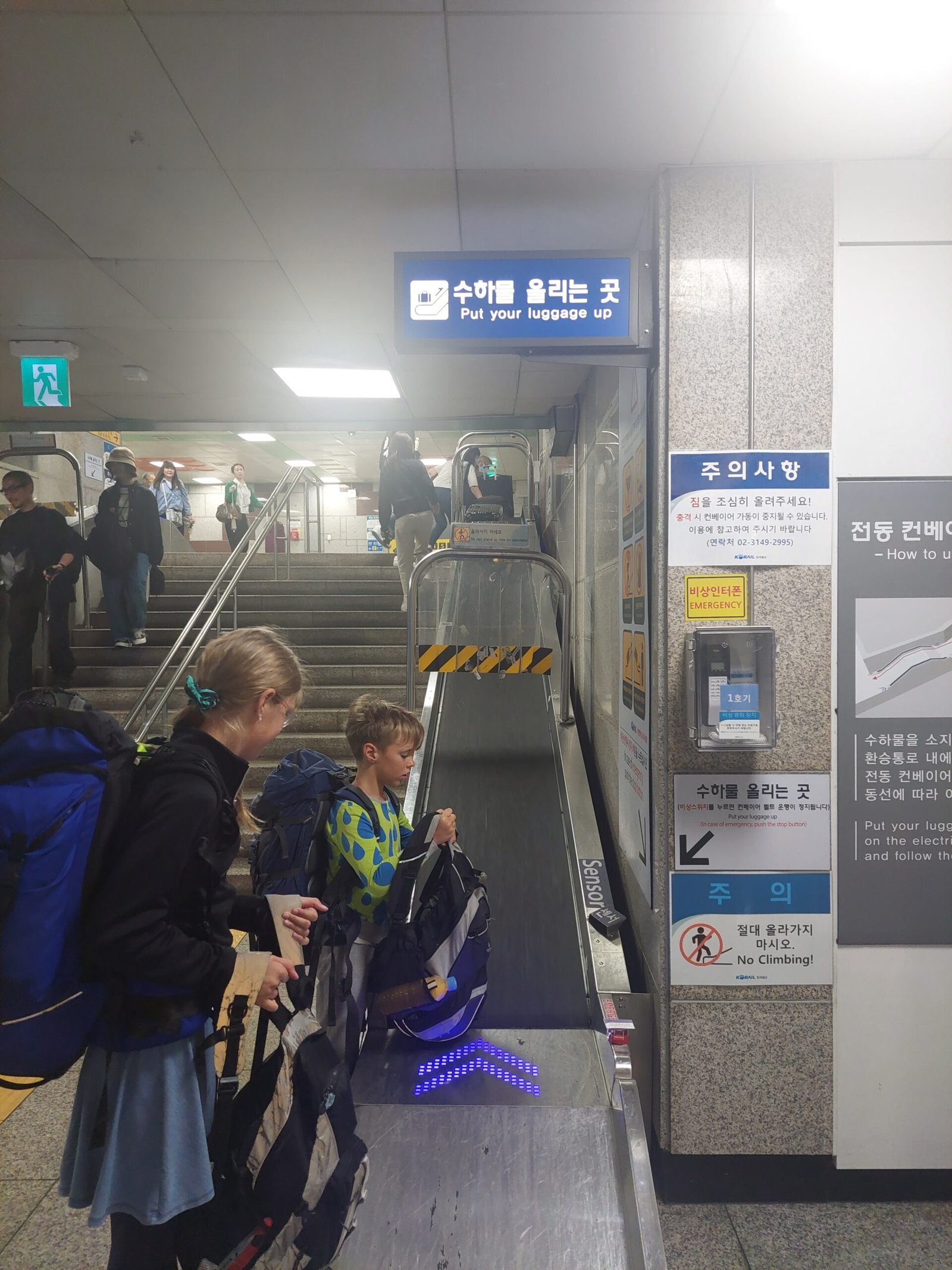 Busaniin (ja koko Etelä-Koreaan) oli ennustettu vähintään uutta vedenpaisumusta, ja vähän oli illalla nukkumaan mennessä jännittänyt, millainen tulva kaduilla aamulla odottaa. Aamulla ei kuitenkaan satanut tippaakaan vettä. Niinpä pääsimme täysin kuivin jaloin ilman Nooan arkkia kävelemään lyhyen matkan Busanin rautatieasemalle, josta hyppäsimme korealaisen luotijunan kyytiin. Tämä KTX luotijuna taittoi 417km matkan vajaassa kolmessa tunnissa. Olimme ajatelleet näkevämme hieman maisemia junan ikkunasta, mutta koska Etelä-Korea on ilmeisesti hyvin vuoristoinen maa, vietimme ison osan matkasta erilaisissa tunneleissa. Ensimmäinen, ja pisin, tunneli oli heti Busanista lähdettyämme. Sillä oli pituutta 20km.