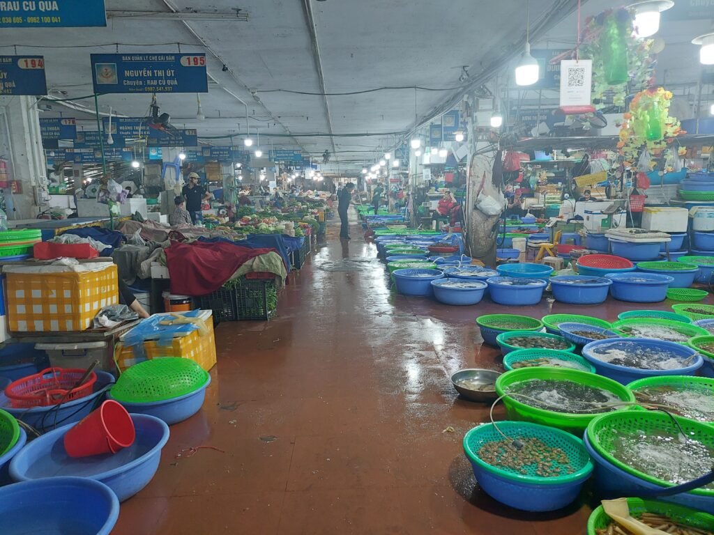 Kun Marko oli palannut parturireissultaan, Jaana lähti käymään vieressä olevalla torilla ostamassa hedelmiä välipalaksi. Onneksi hän ei sillä kertaa yrittänyt houkutella lapsia mukaansa ostosreissulle, sillä lihaosastolla hän törmäsi siihen tosiasiaan, että Vietnamissa syödään myös koiranlihaa. Se tuntuu todella oudolta, sillä täällä olemme nähneet todella monilla ihmisillä myös lemmikkikoiria. Niitä tuskin kotioloissa pidetään kuitenkaan sen vuoksi, että hauvan voisi pistää pataan ja tarjoilla päivälliseksi jonakin iltana. Markkinoilta löytyi todella kattava ja edullinen hedelmäosasto, josta Jaana osti vesimelonia, ananasta, omenaa sekä mangostaneja. Niillä, ja myös markkinoilta löytyneellä tuoreella leivällä nälkää sai siirrettyä sopivasti päivällisaikaan asti. Välipalan jälkeen oli Jaanan vuoro lähteä kauneudenhoitoreissulle. Jatkuvasta kävelystä (ja huonosta rasvauksesta) johtuen Jaanan jalkapohjat (erityisesti kantapäät) olivat aivan hirveässä kunnossa. Niinpä hän marssi lähimpään kauneushoitolaan, joka mainosti tekevänsä myös jalkahoitoja. Siellä jalkahoidon hinnaksi sanottiin ensin 80 000 dongia mutta vilkaisu Jaanan kantapäihin nosti hinnan 100 000 dongiin. Sekin oli varsin edullinen hinta, sillä Suomessa on ihan turha kuvitellakaan saavansa jalkahoitoa neljällä eurolla. Noilla taksoilla ei täällä kyllä palvelualojen yrittäjät juuri rikastumaan pääse.