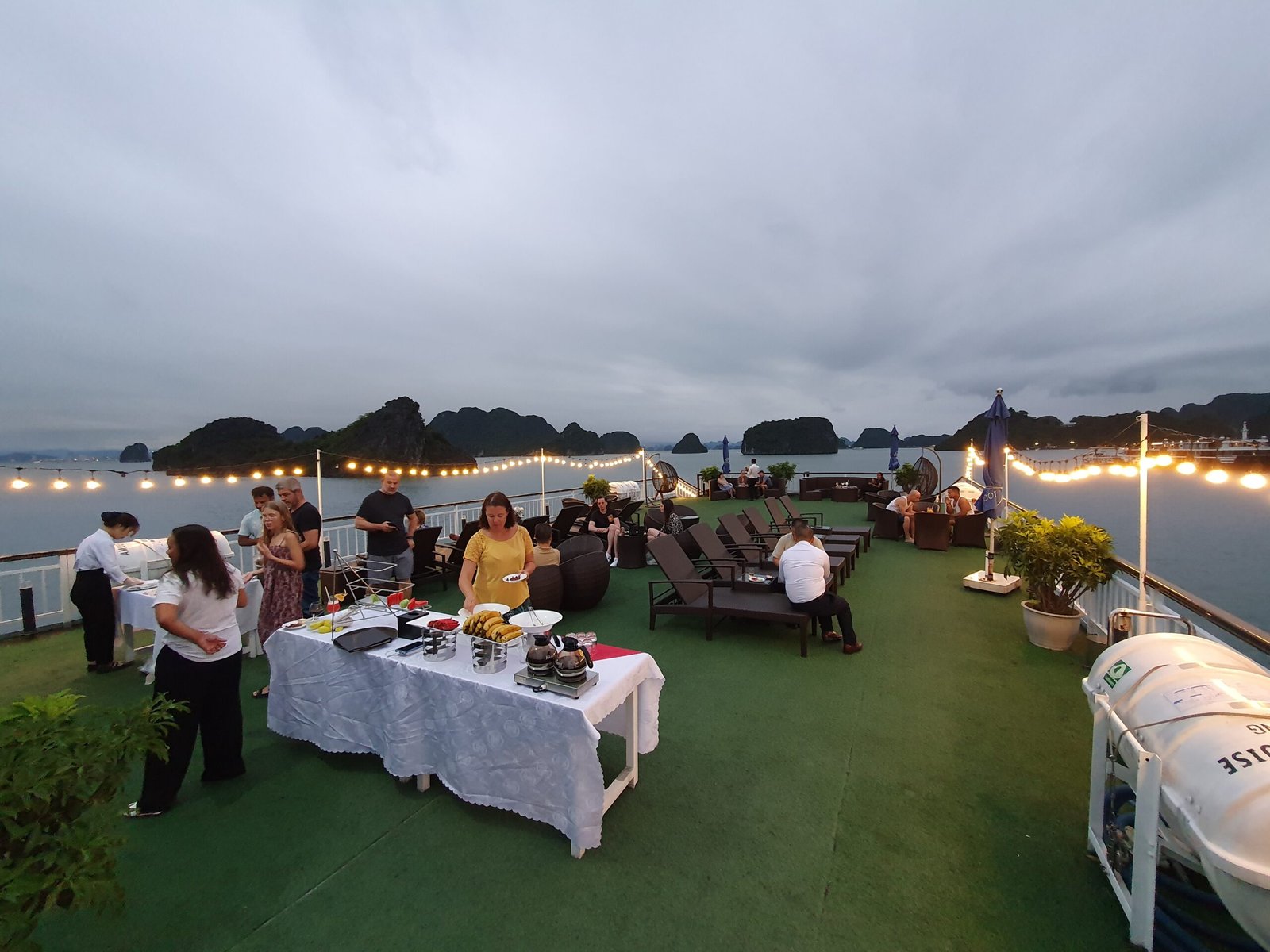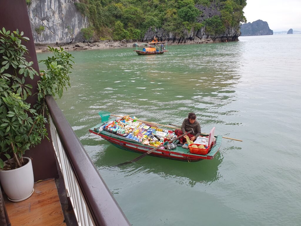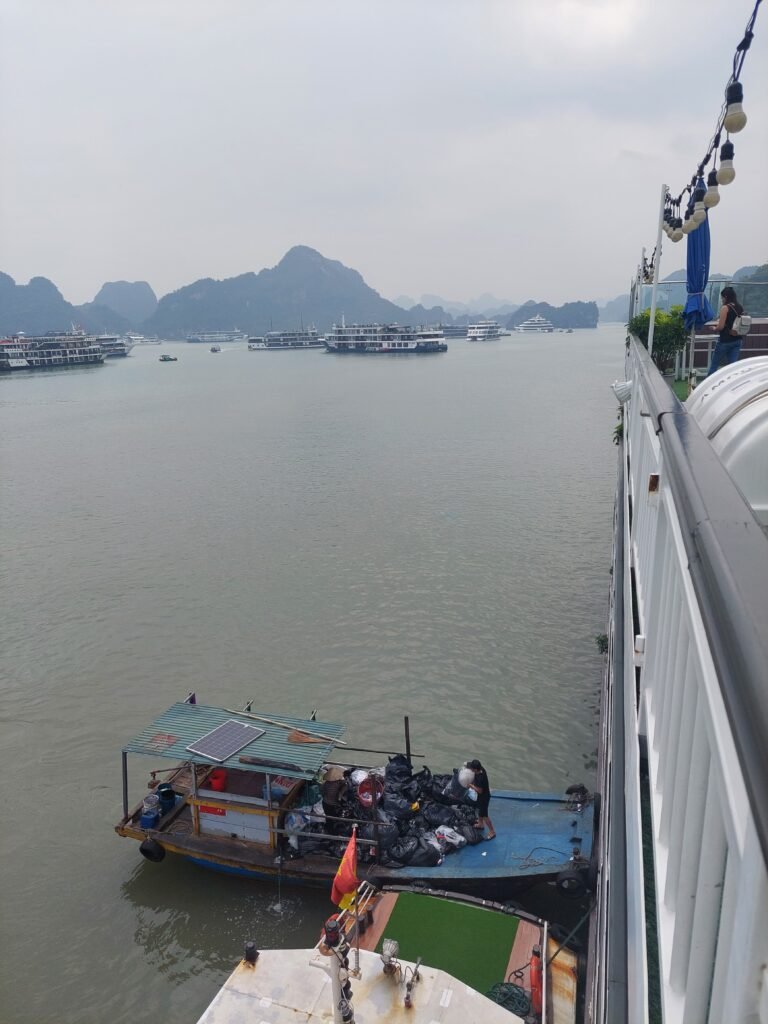 Ha Long and Lan Ha bays were indeed incredibly scenic places. There are over two thousand limestone rock islands in the sea, and the area covers over 1500 square kilometres. Even though the area is vast, you don’t have to sail there alone. Especially in the evening, all the passenger ships park in the same area for the night. Then it’s like a small town with lights all around. The number of tourists certainly contributes to the fact that there is a lot of rubbish in the bay in places. But apparently most of the rubbish come from the local people themselves. The locals should do more to clean up the bay, as it is a UNESCO World Heritage Site. Of course, it would be even more important to make people understand how wrong it is to litter in the first place.