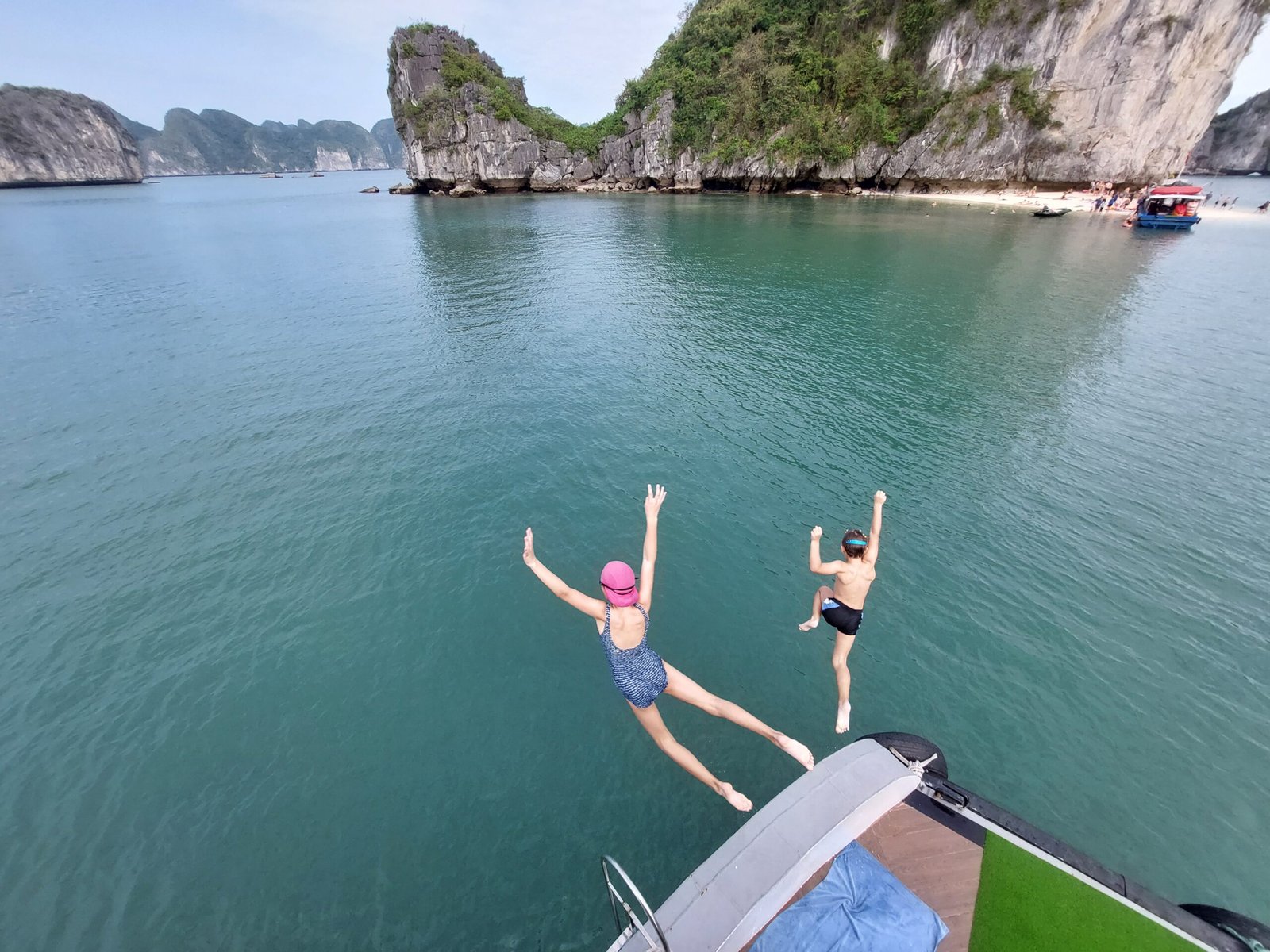 Next we moved on to slightly cleaner waters, where we all got to swim. The kids were especially excited to jump off the deck of the boat into the sea. It was nice to get into the water, because it was getting too hot even though the sun didn’t shine all the time.