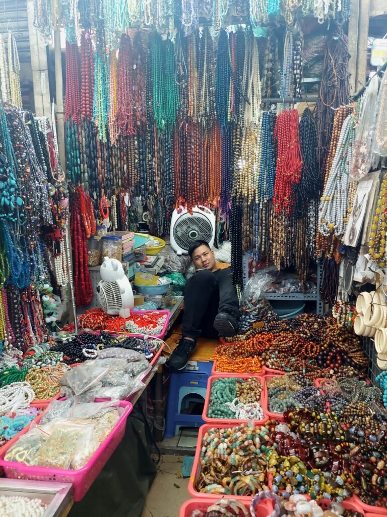 Pienen kävelyrupeaman jälkeen päädyimme paikalliselle kauppahallille. Tässä paikassa oli kolme kerrosta, joissa myytiin suhteellisen edulliseen hintaan mm. koruja, kelloja, hattuja, kankaita ja vaatteita. Marko ostikin itselleen uudet shortsit, koska edellisiä on pesty reissun aikana niin monesti, että värit ovat haalistuneet todella pahasti. Emme jääneet kauppahalliin kovin pitkäksi aikaa, sillä vaikka se oli teknisesti ottaen sisätiloissa, ei siellä ollut minkäänlaista ilmastointia. Pikkukojuissa pörräävät tuulettimet eivät viilentäneet oloamme riittävän tehokkaasti.