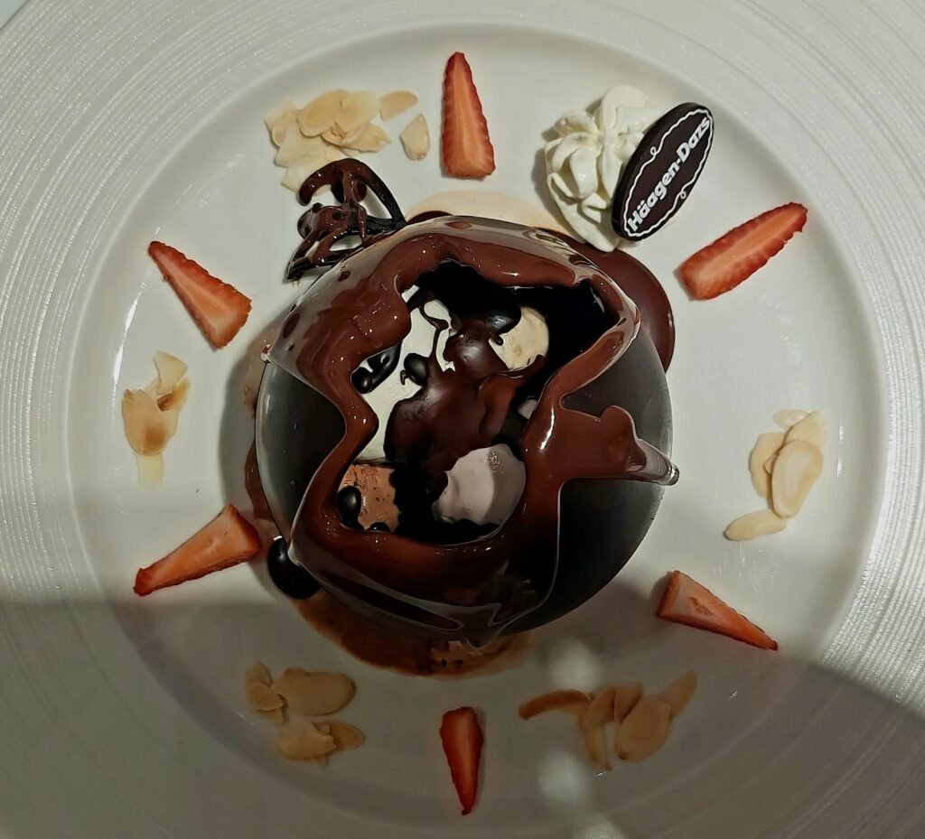 Kauppahallilta palasimme takaisin järven rantaan, jossa olimme edellisenä päivänä käyneet. Helteinen päivä vaati viilennystä, joten astuimme sisään Häagen Dazs-jätskibaariin ja tilasimme itsellemme ruhtinaalliset jäätelöannokset ja limsat. Ruhtinaallinen oli noin 50 euron yhteishintakin, sillä herkutteluhetki maksoi yhtä paljon, kuin buffet-päivällisemme Ha Longissa pari päivää sitten.