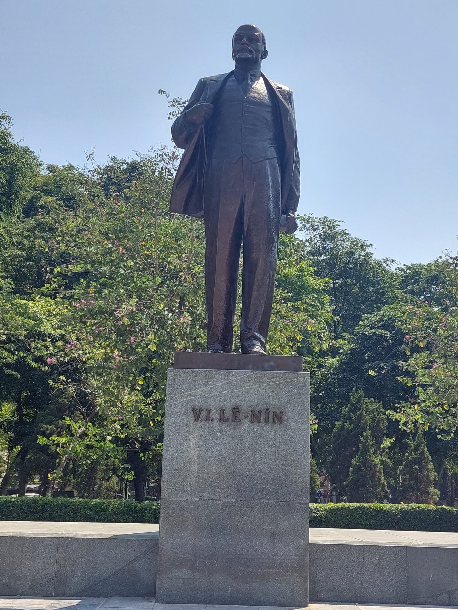 On Thursday we left our backpacks at the hotel, and went to see the Temple of Literature. Because the place was only a couple of kilometres away, we decided to walk there despite the heat. It was +38 degrees by this point, so it was another sweaty walk. We first ended up in an area with several embassies. Next to the embassies was a park where locals were passing the time playing various card and board games. In the square next to the park, there was a statue of Lenin. The last time we saw statues of Lenin was more than ten years ago on our Trans-Mongolian trip.