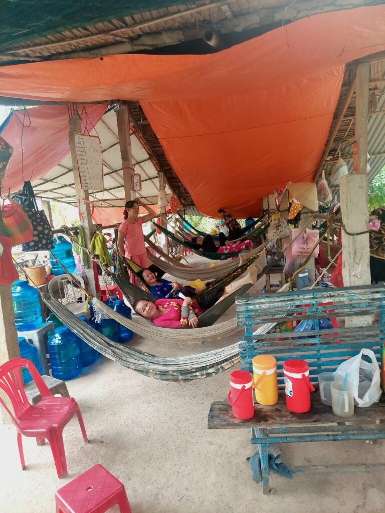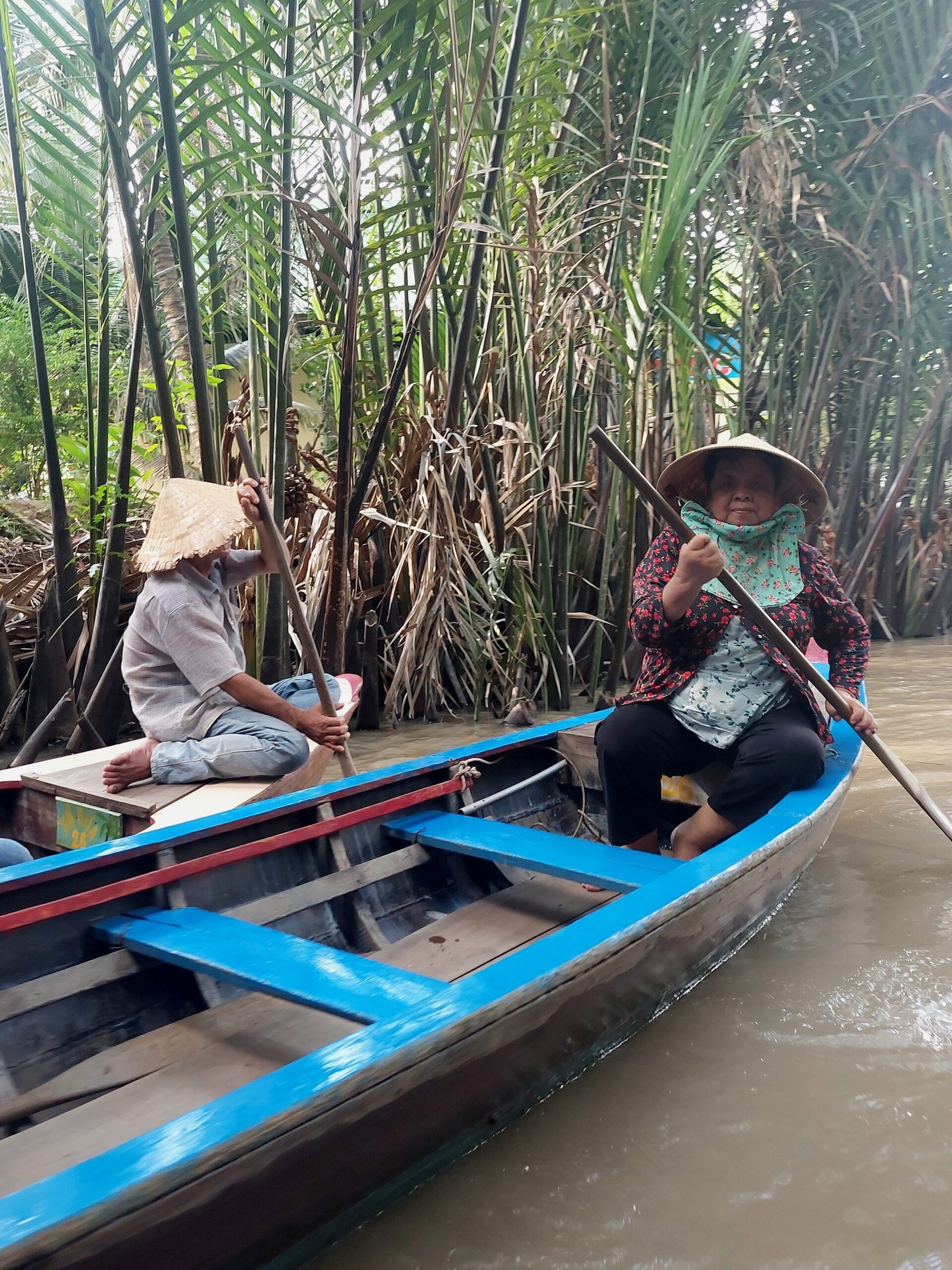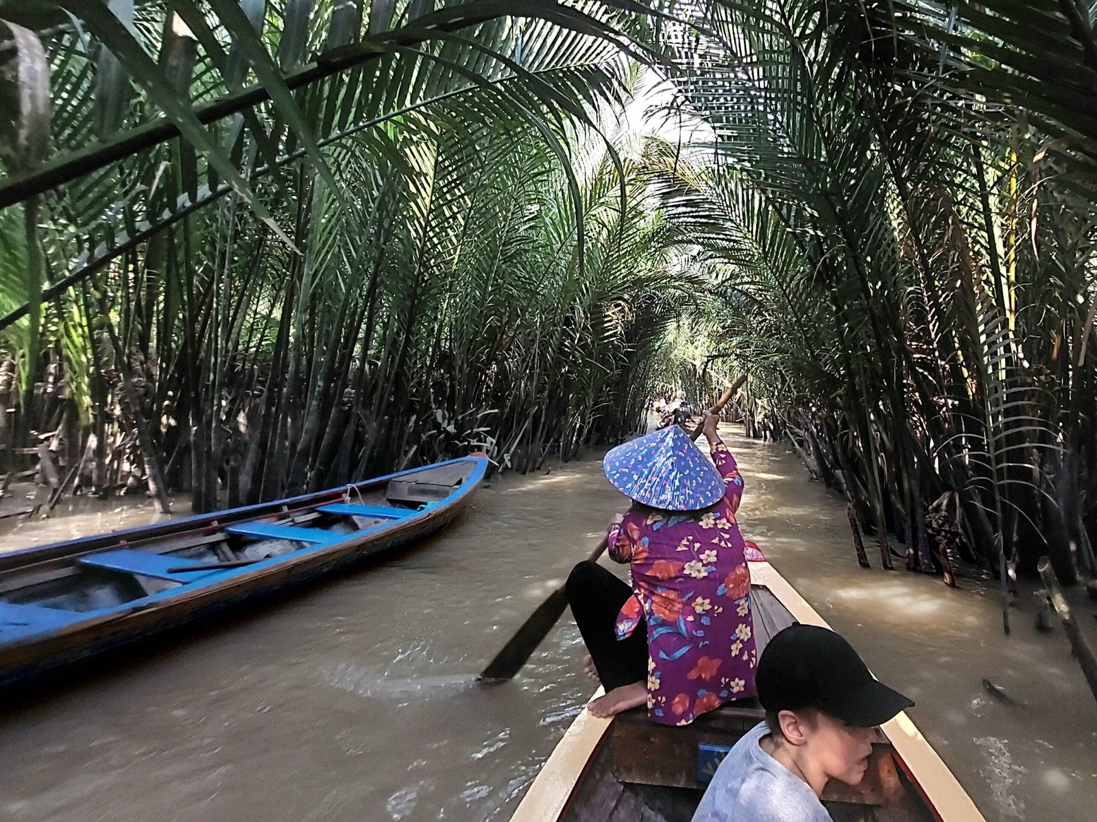 Puutarhalta lähdimme pienillä veneillä kapeaa kanavaa pitkin takaisin isommalle veneelle, joka odotti meitä 2km:n päässä laiturissa. Tämä melottava vene oli melkoisen kiikkerää sorttia, joten oli parempi istua aivan paikoillaan ja keskellä tuhtoa, ettei päätynyt ruskeaan veteen uimasilleen.