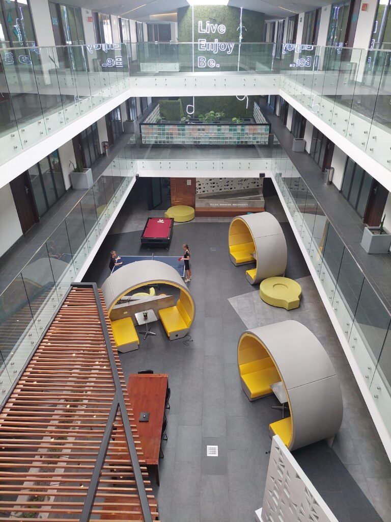 Our apartment on the fourth floor was huge (two living rooms, open kitchen, two bedrooms and two bathrooms). The apartment also had a balcony, which didn’t offer much of a view. In addition, the lobby in the middle of the apartment complex had a comfortable lounge area where the kids liked to play ping-pong and pool.