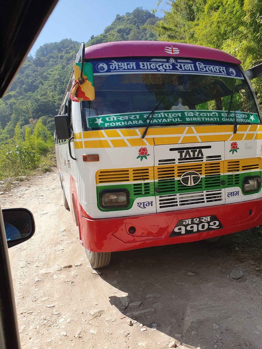 Tiesimme, että tie alkaisi päällystämättömänä kivipeltona, mutta jossain vaiheessa se muuttuisi ‘highway’ -tason valtaväyläksi. Poliittisesti korrektisti ilmaistuna muutos oli hienovarainen, mutta kahden ja puolen tunnin päästä saavuimme Nepalin toiseksi suurimpaan kaupunkiin Pokharaan. Bakkanaalit alkakoon!