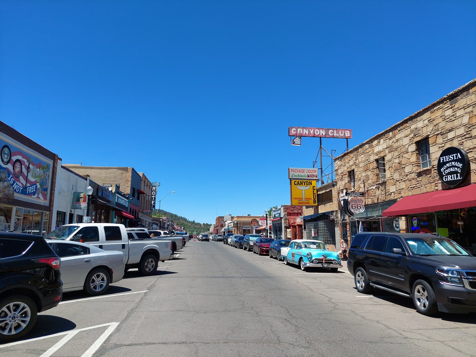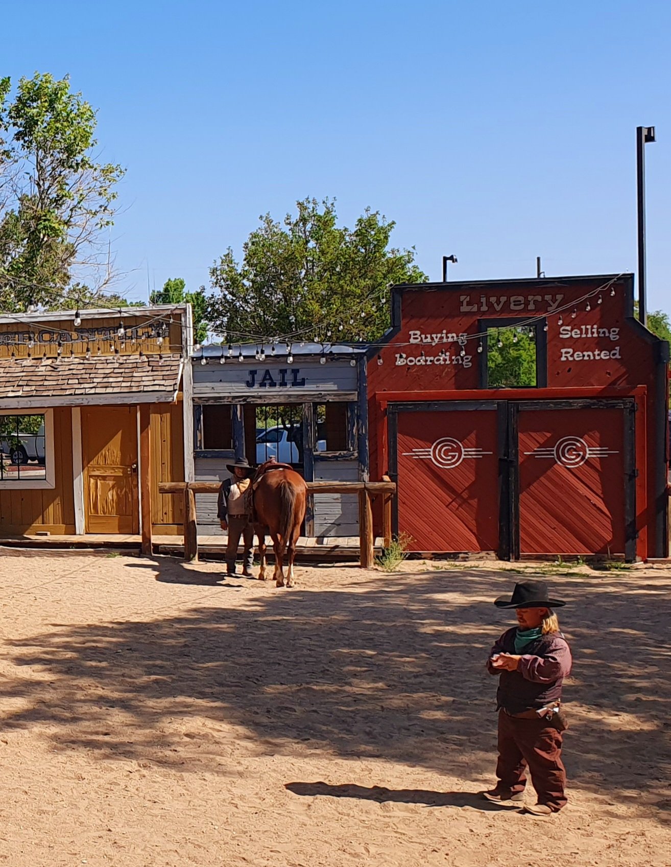 In the evening, we went to the Williams self-service laundry to do our laundry. At the same time, we also did some grocery shopping. When we returned to pick up our laundry, the road to the laundromat was blocked because there was a Wild West show going on in the middle of the street. A local theatre group was there depicting life in the late 1800s Williams. It seems to have been a lot of guns blazing and booze drinking back then, at least for some people. Ronja didn’t appreciate the show very much and stood in the audience covering her ears most of the time, muttering that yet again the whole trip was ruined.