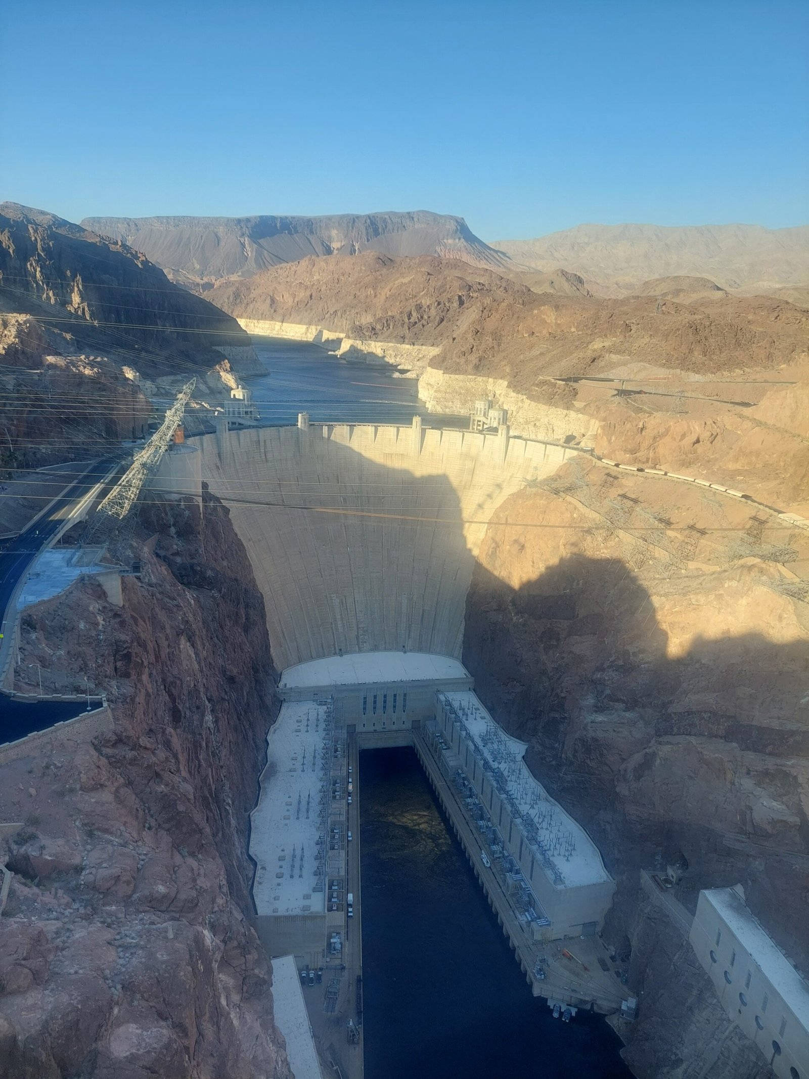 The drive to Vegas from Williams took about 4h. Without the stops, the trip would have been shorter, but we wanted to stop at the Hoover Dam on the way to admire its grandeur. First we walked to the 244m high bridge, from where we could admire the dam in all its glory. The wind was really fierce on the bridge. You couldn’t imagine wearing hats, and it was safer to hold on to your glasses too. Even when taking photos, you had to grip your cell phone really tightly in your hand to keep it from falling into the Colorado River below. After admiring the dam from above, we drove down to the dam, and over it. There would have been tours of the inside of the dam, but we didn’t have time to do them this time.