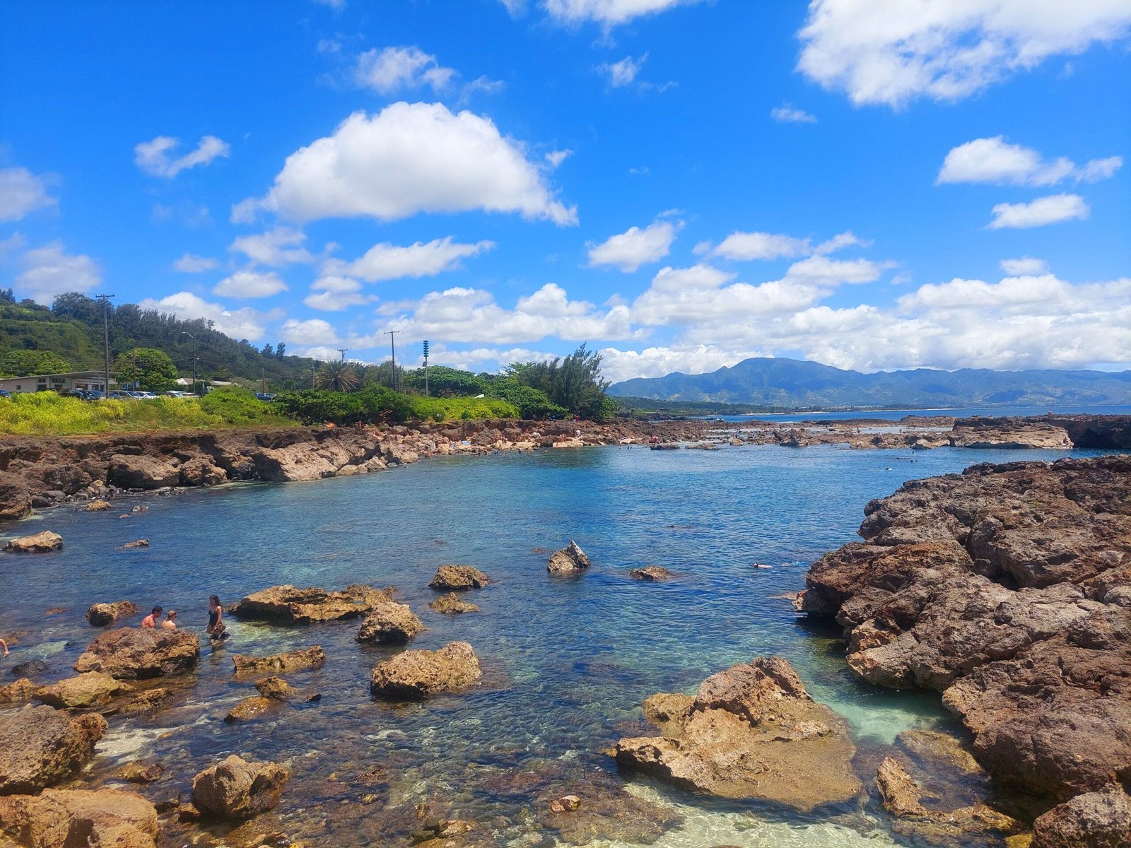 For the next day, we chose Shark’s Cove, one of the most popular snorkelling spots on Oahu. This beach was a little further away, about a 50min drive from our apartment. It was worth the drive, though, as there were lots of colourful, big fish. Shark’s Cove is a rocky cove where the tide also forms pools where you can see fish by wading in. This makes the beach well suited to those without swimming skills. The only drawback is that the beach is not easily accessible. It is not a sandy beach, the whole place is lava rock. The rocks are extremely sharp and uneven, so you had to be very careful to get to the water without getting cut. Luckily we all had our swimming shoes with us. Without them, it would have been impossible to walk on the rocks at all.