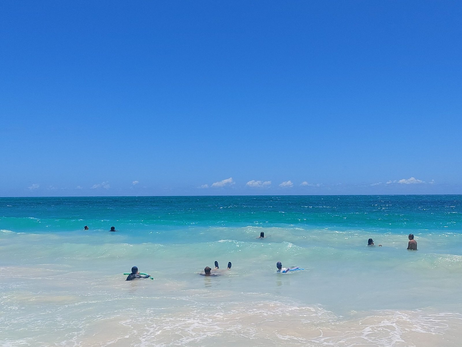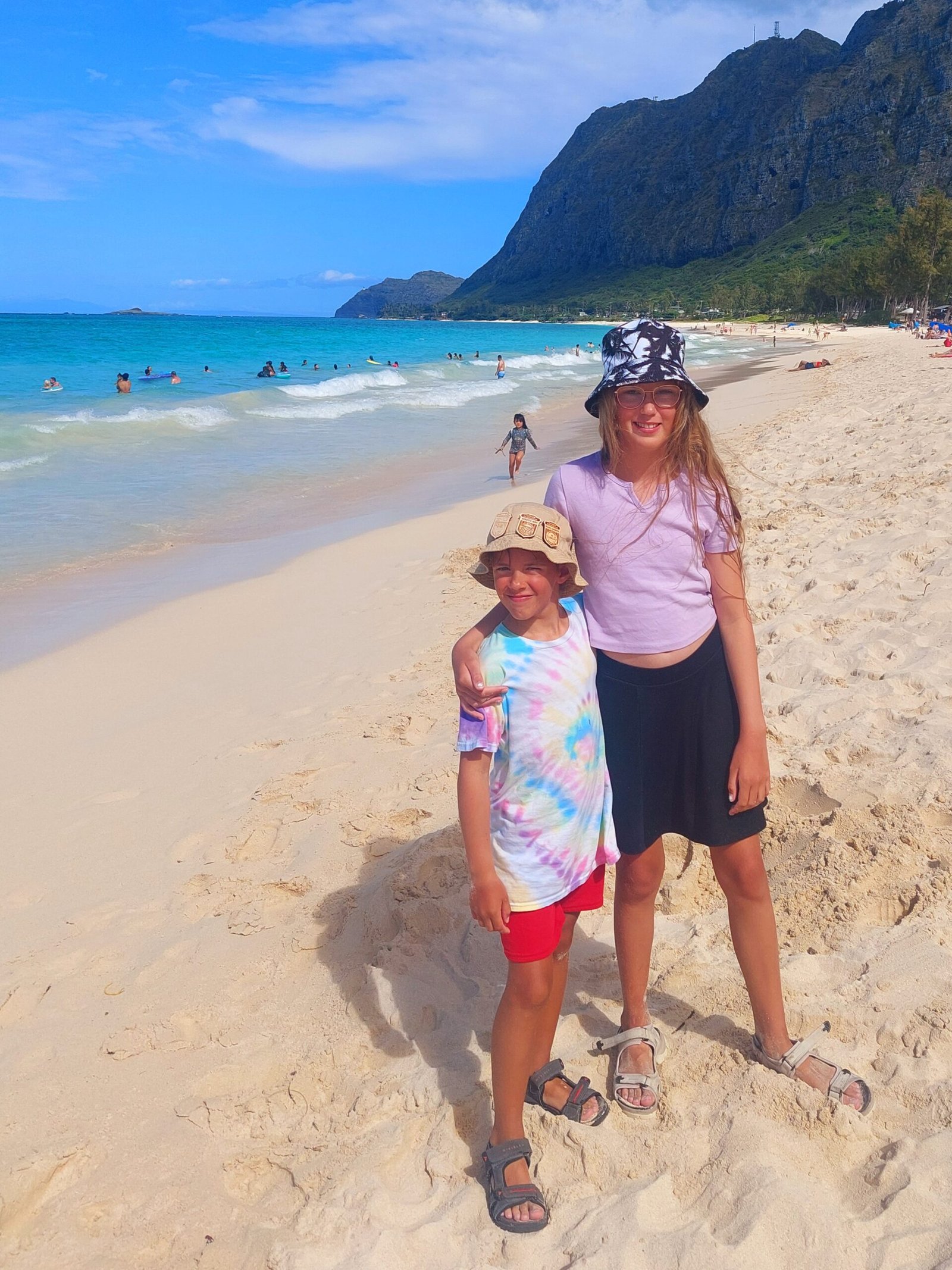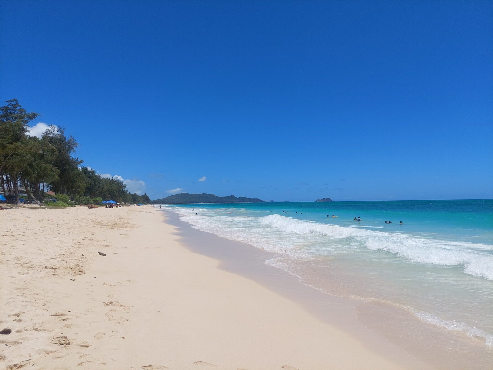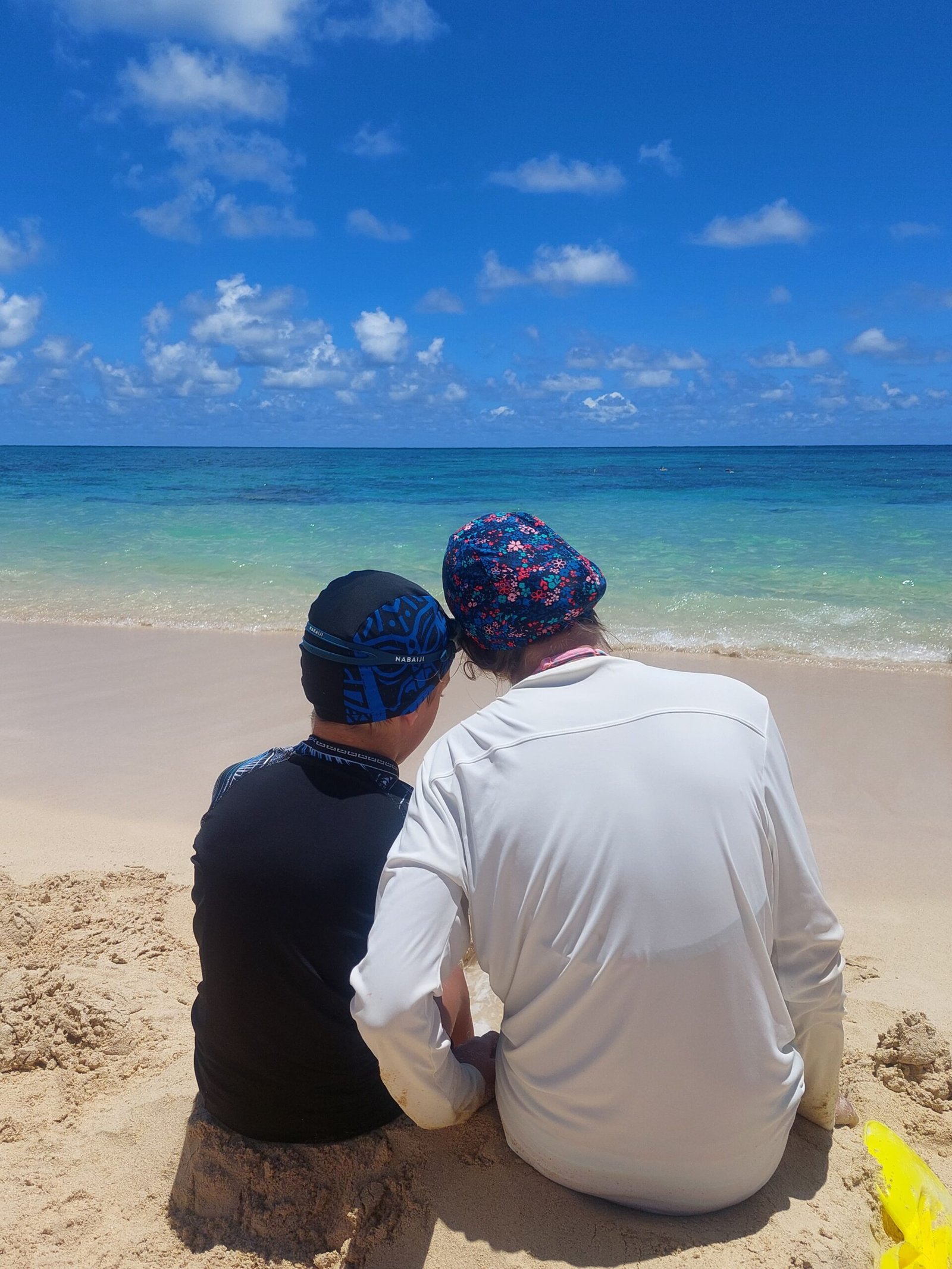 Sunday was also a beach day. This time the destination was Waimanalo Beach on the east coast of the island. It was a half hour drive, but as the island is relatively small, nothing here is too far away after all. This time there was a car park on the beach, so we didn’t have to carry our stuff very far. This 5 mile stretch of white sandy beach was stunning though. When we got there, we were met by several warning signs, but despite them, the beach was crowded, so we headed there too. The beach was lined with large trees, so it was a good place to spend a day at the beach. We thought we were well equipped, but we were certainly outdone by many. Some families had barbecues and beach chairs. One family had brought a covered playpen for their baby, and another family had brought an inflatable pool for their toddler, which they filled with seawater. Apparently they did not trust that their child would be able to play safely enough in the waves.