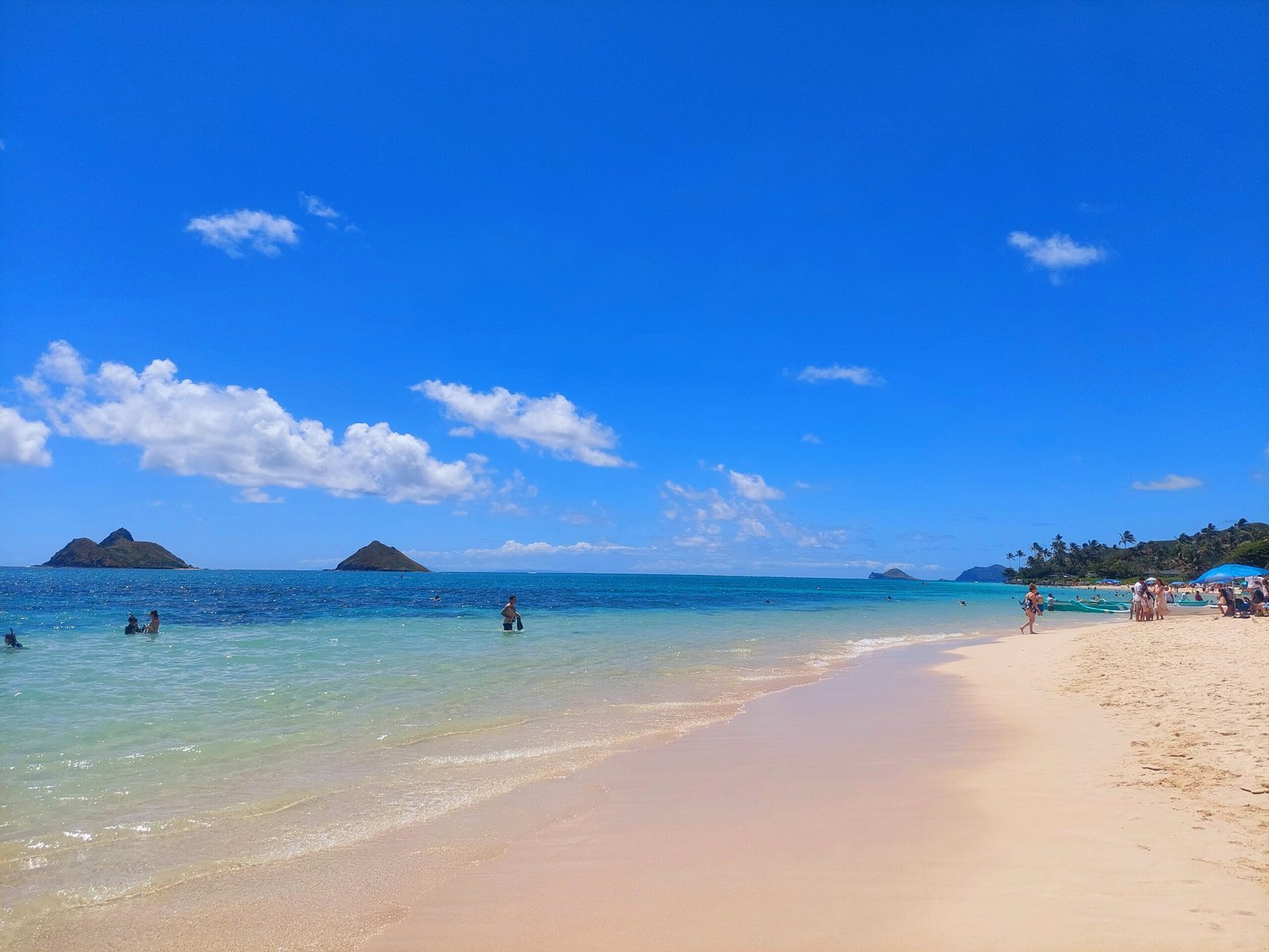 Luckily, we knew about the lack of parking spaces in advance, and parked our car in the parking lot of Kailua Beach, next to the beach, and walked about 15-20min from there to Lanikai Beach. The beach was just the postcard-perfect white-sand prototype. It’s probably actually a really pretty place, but by the time we got there, there were already a lot of people there having a beach day. A beach dotted with parasols and beach towels is not necessarily a very pretty beach. However, Lanikai Beach was much less crowded than, say, Waikiki Beach. This was no doubt due to the fact that if you don’t live in the area, you have to have your own car to get there, or else you’d have to familiarise yourself with the local bus network.