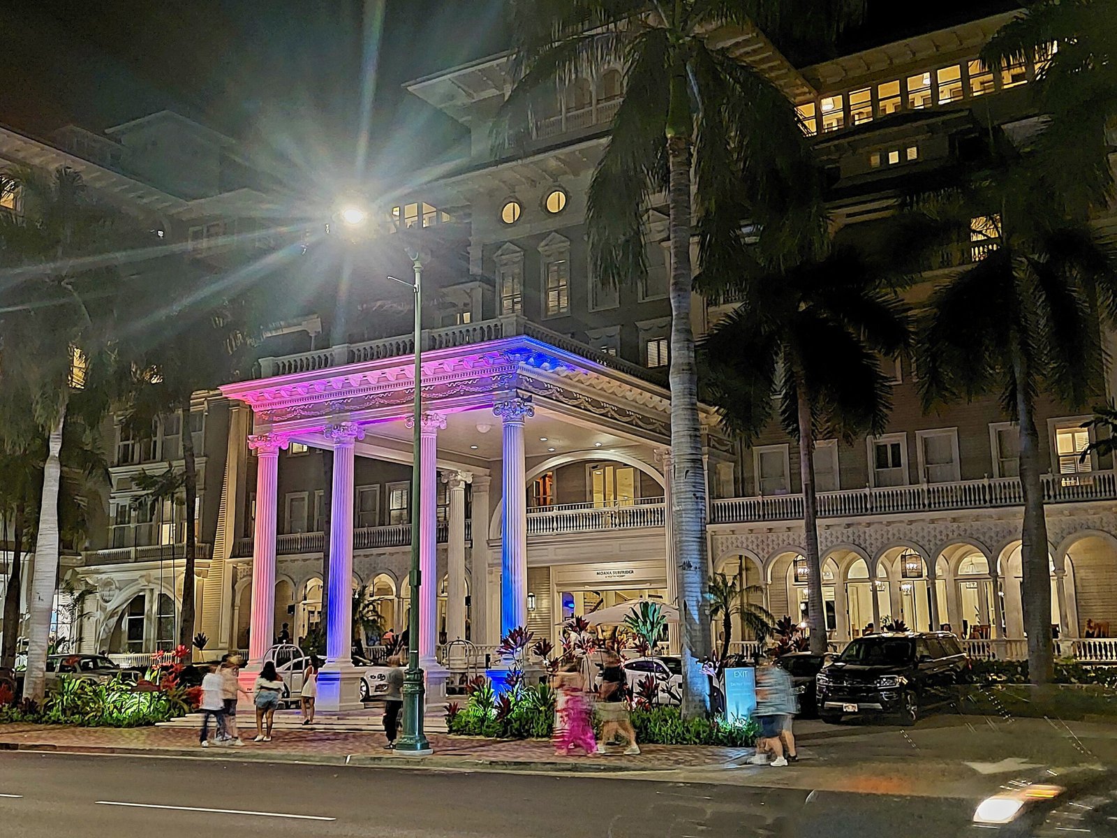 After the dance performance, we went for a short walk on the Waikiki beach boulevard. There would have been Louis Vuitton, Prada and Chanel on offer again, but we didn’t want to try our luck with the doormen with their earphones. So we settled for window shopping only. Some of the hotels also looked pretty swanky, so maybe there will be enough customers for these shops. The restaurants and shops on the street were very busy. Maybe not as much as in Las Vegas, but in some places it was quite crowded.
