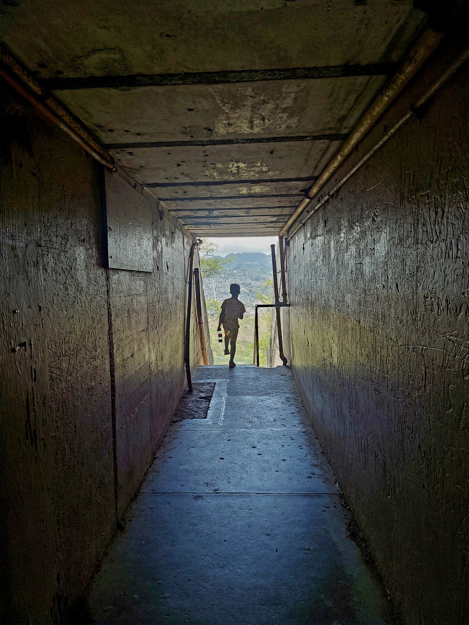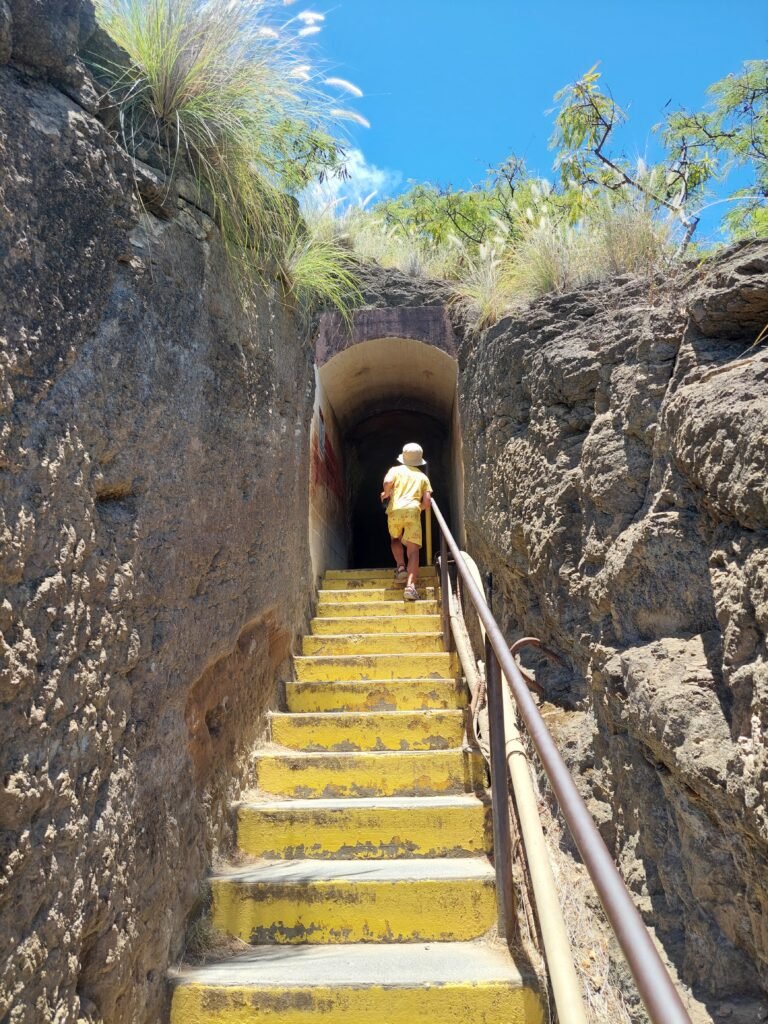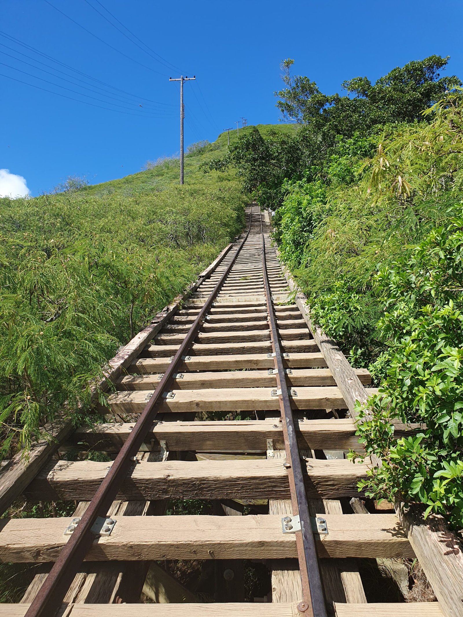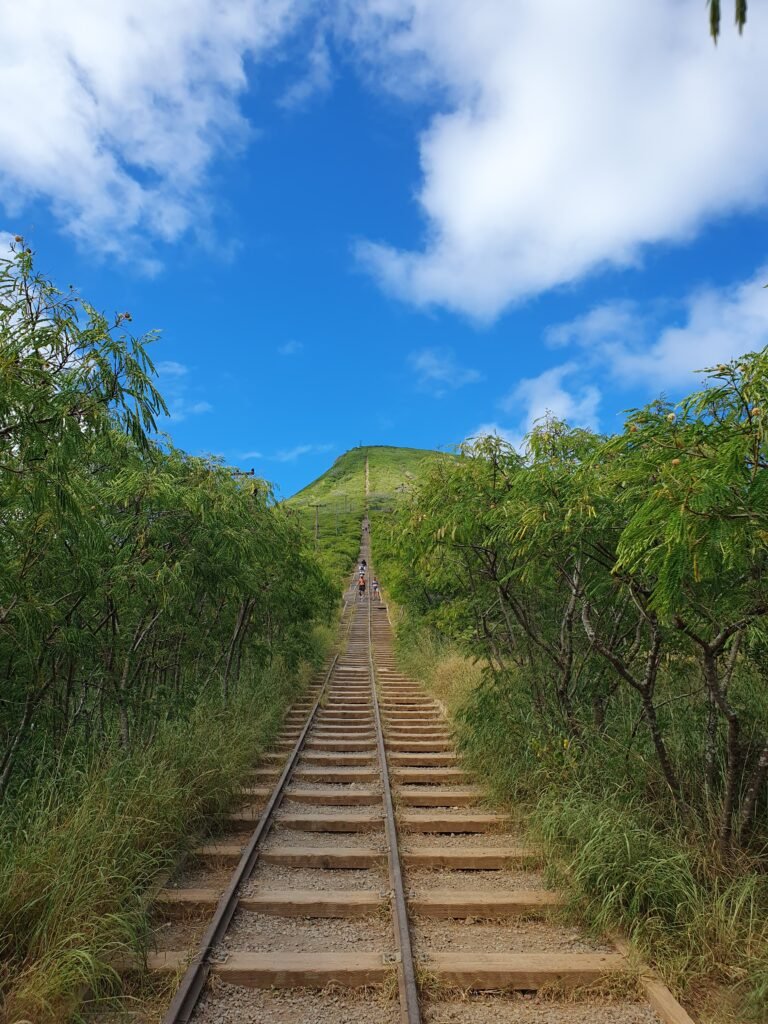 Marko was very excited about this information. Apparently he hadn’t sweated enough when he climbed Diamond Head. Jaana and the children were not at all interested in a much steeper sporting feat. So they stayed in a small playground at the bottom of the hill and waited for Marko, who, like many locals, decided to start climbing up the slope. During the Second World War, a carriage was said to have run to the top of the hill on rails, but today only the rails remain. The hill was climbed up and down along the crosspieces of the rails, and there were no handrails to take support from when trudging up.