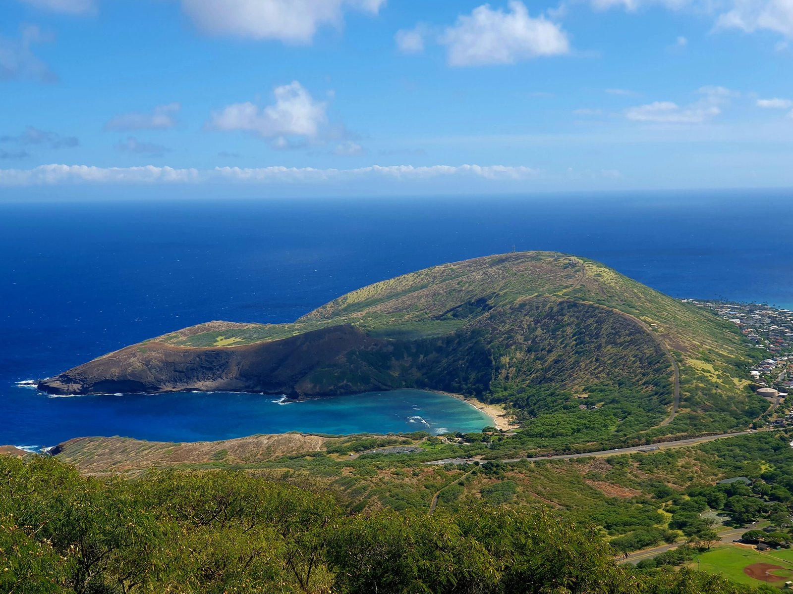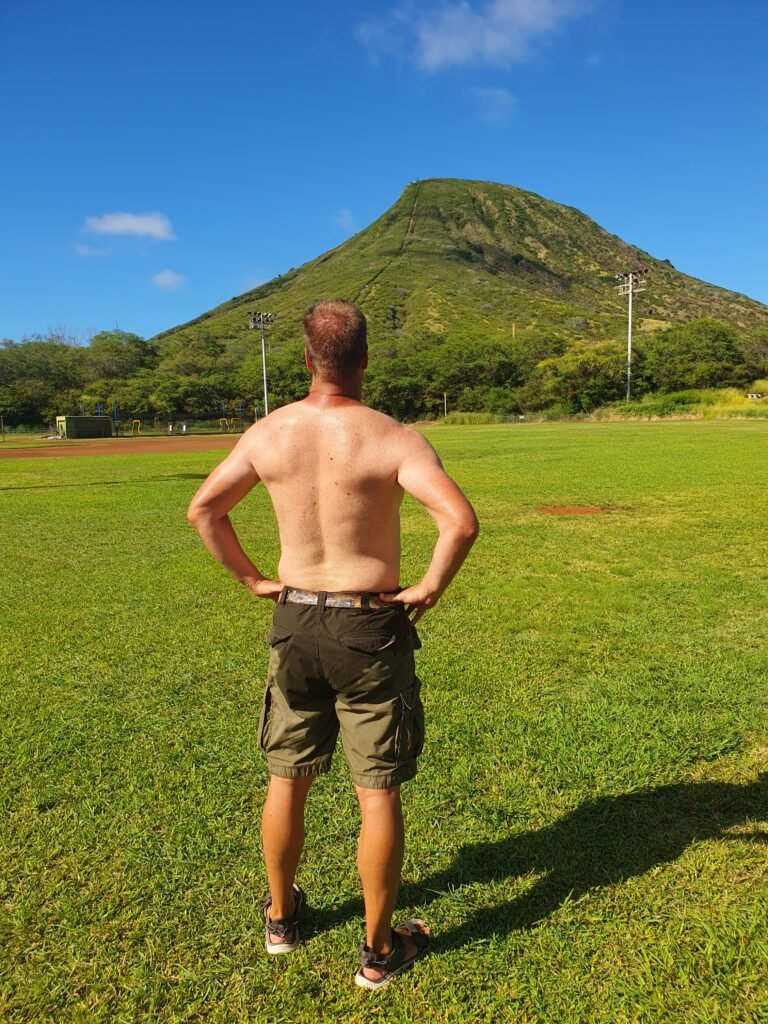 The scenery was stunning, and Marko could also see Hanauma Bay from the top of the hill. Little did the park ranger know how determined Marko was to see that snorkelling bay. The route was much sweatier than the Diamond Head route, so it was lucky that there were decent toilets at the bottom of the hill. There, Marko could wash off the worst of his sweat in the sink and change all clothes, so as not to scare away the passengers on the plane with his foul smell.