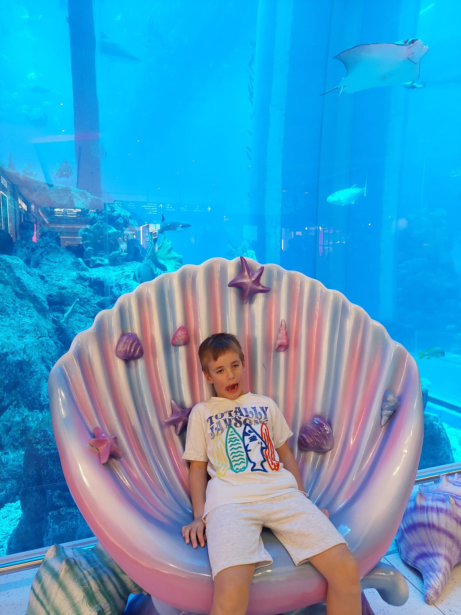 Since Risto wasn’t too much into shopping anyway, we went to the Dubai Aquarium and Underwater Zoo. That too was extremely expensive! But since there was a chance to meet up with the Gentoo penguins, we bought the ultimate experience ticket with the penguin encounter. The ticket was pricy (1596AED, about 400€), but worth it. In addition to meeting the penguins (no picture of the encounter, own cameras were strictly forbidden and the official photos were 50€ each), we go to ride on a glass bottom boat in the main tank, see the shark eggs and the shark nursery, saw some fruit bats and other nightly creatures, checked out the gigantic crocodiles, walked through the underwater tunnel and of course exited though the gift shop.
