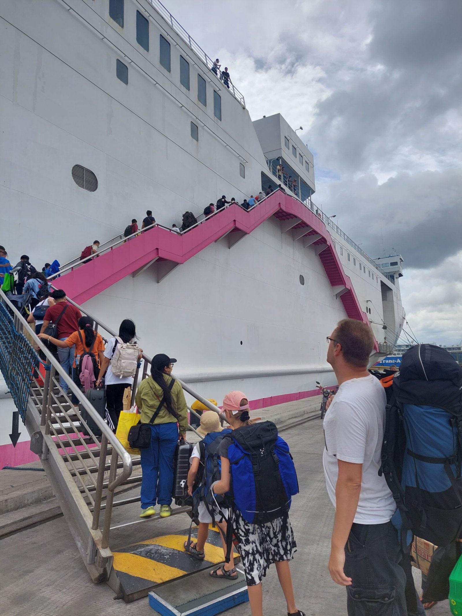 The ferry was supposed to arrive in Manila at 8:00, but we were there at 13:00. When the ship’s doors opened, about twenty porters rushed in, offering to help passengers with their luggage, for a fee, of course. We were also offered their services, but we decided to carry our own bags off the ship.
