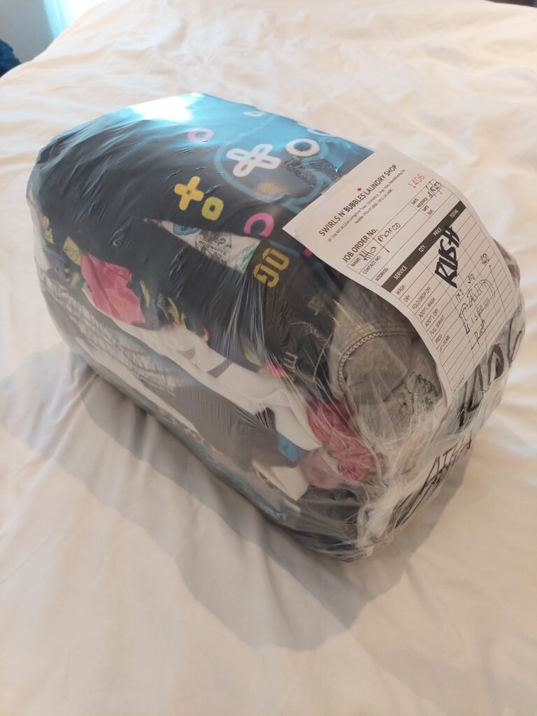 The apartment was nice and clean. When registering as a guest, we were asked to show our Covid vaccination cards for the first time. Then we got the keys and got into our apartment on the 21st floor. The view from the balcony, especially in the evening, was great. After a very late lunch or an early dinner, the kids went for a swim in the pool on the 55th floor. Jaana took the laundry to the tower building next door. Since we wanted our laundry to be ready the next day, we had to pay the double price, but 420PHP (7€) isn’t too much for the service where they wash, dry and fold our clothes.