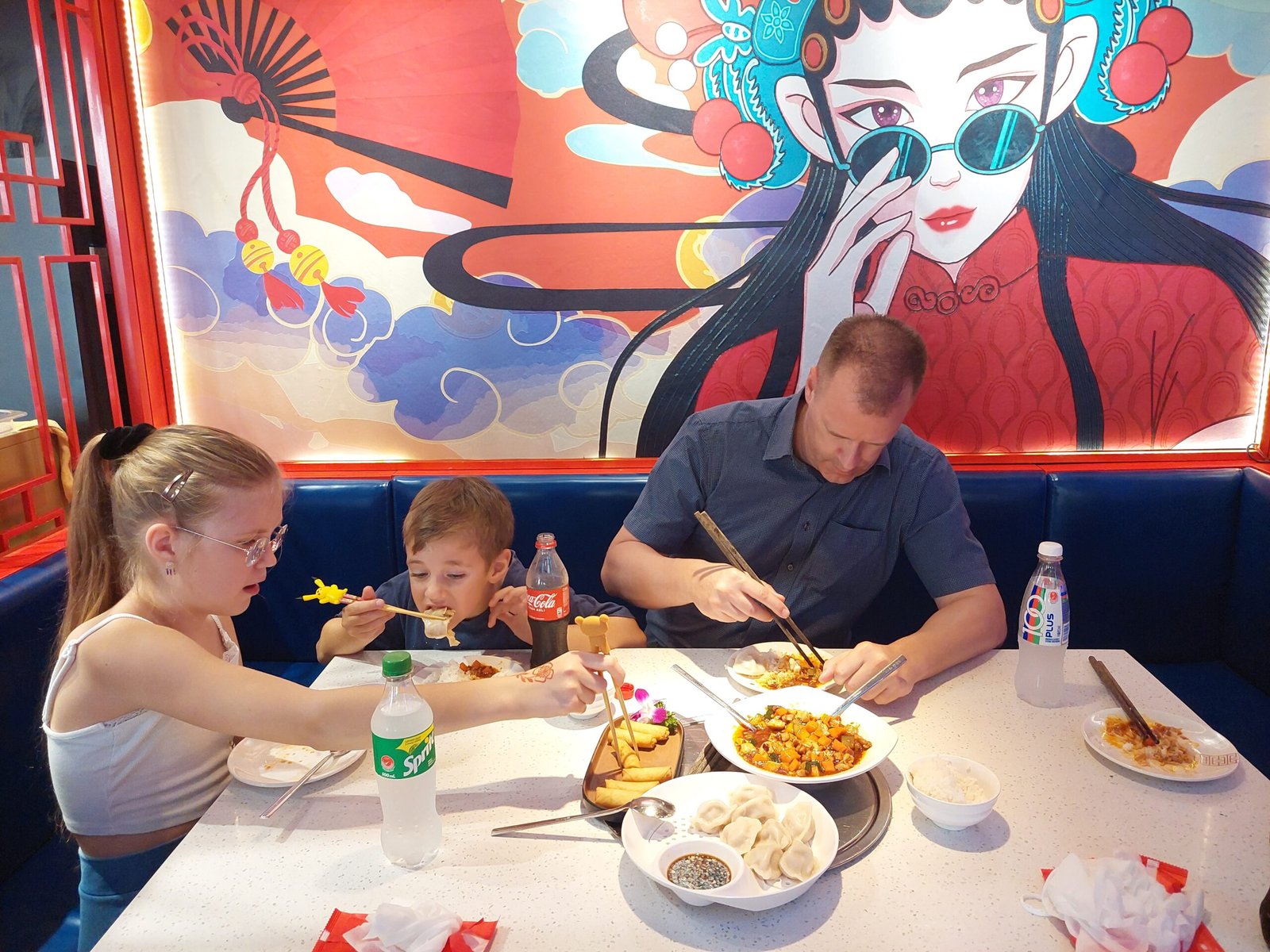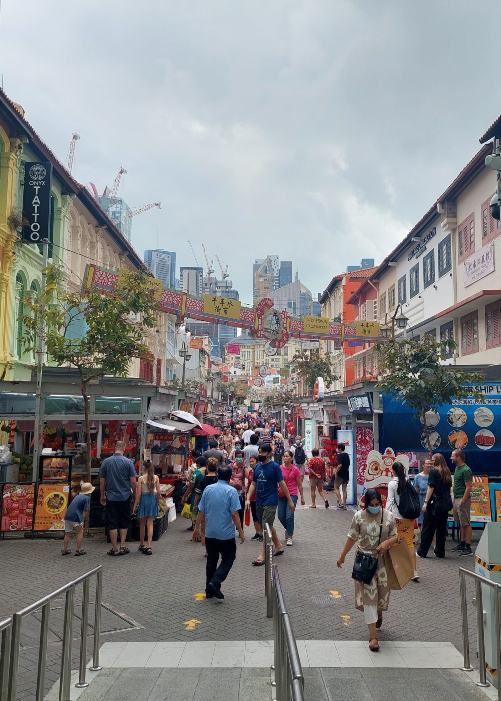 After the breakfast we took the metro to China Town. The smell of durian was very strong and even the masks we still had to wear in the metro wouldn’t filter the smell. We walked around the area and ended up buying kid’s sticks for eating. Those sticks were attached to each other from the other end to make it easier to eat with them. Ronja and Risto tried them when we had lunch at a Chinese restaurant and they did quite ok. The lady in the shop told us that the kids here start practising eating with sticks when they turn two. There are special sticks for the young ones too. Those sticks have rings to place the fingers, so the kids learn the right grip right away.
