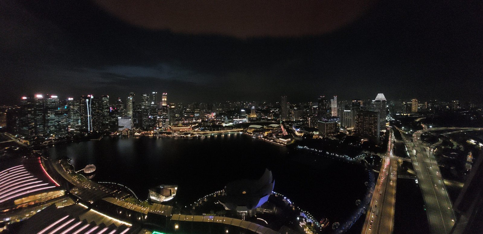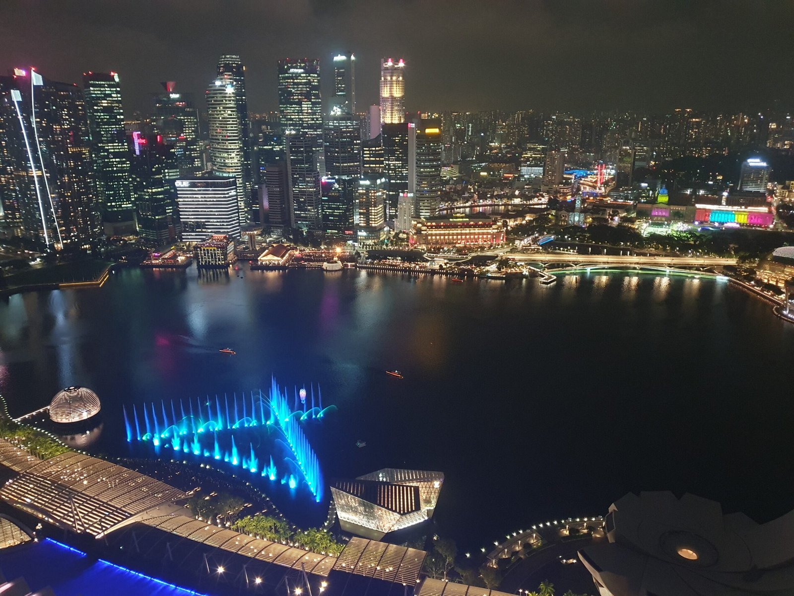 The toilet visit was apparently such an eye-opening experience for the kids that they kept talking about it all the way to the Marina Bay Sands hotel and the observation deck on the 56th floor. The view was amazing! There would have been a restaurant on the 57th floor for hotel guests, but since one night at this hotel costs about 600€, we figured that the restaurant was probably a bit too pricy for us. So we ended buying chips and two non-alcoholic Singapore Slings for the kids from a small kiosk on the observation deck.