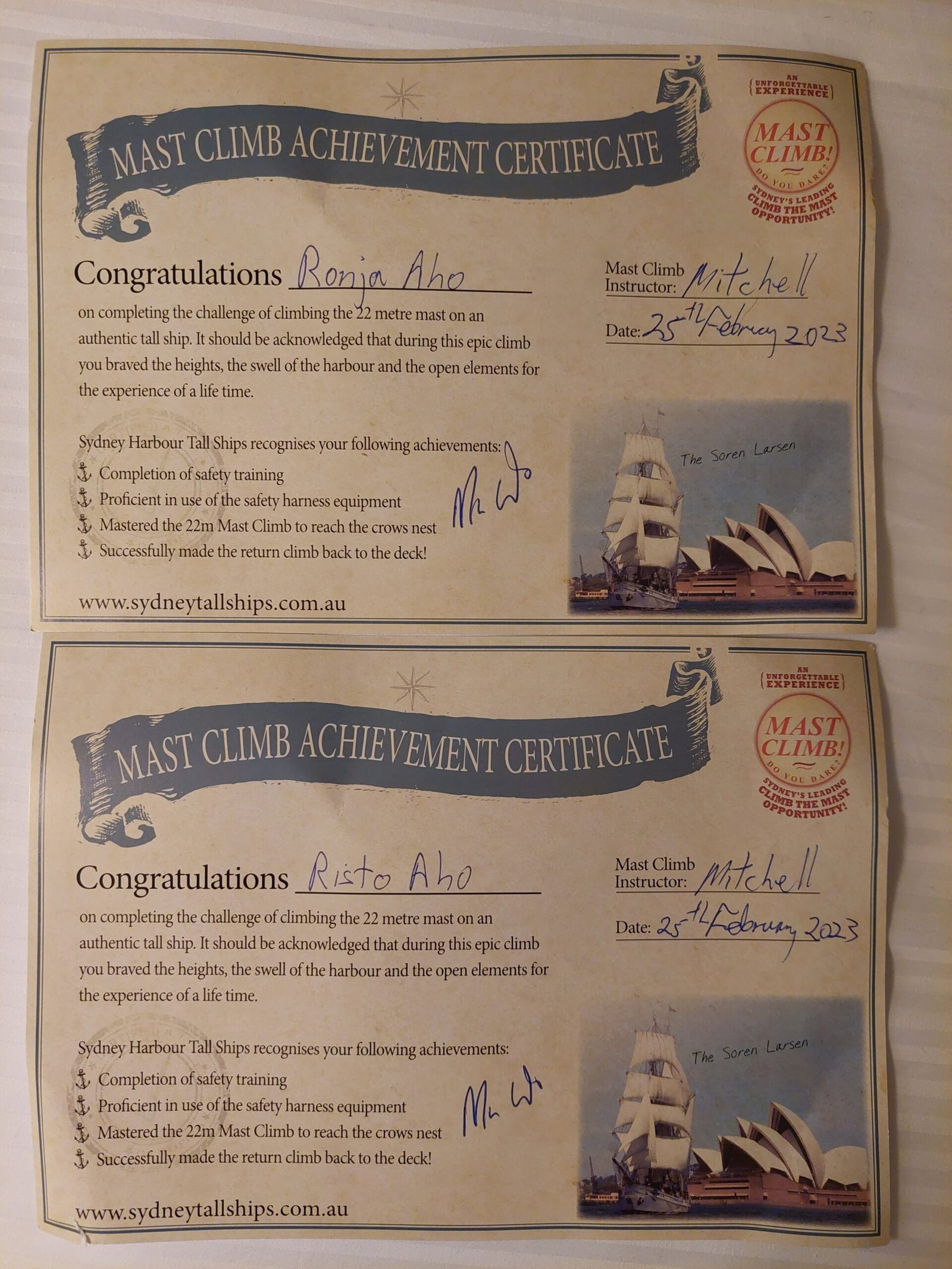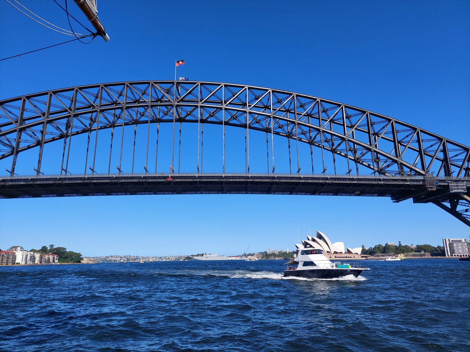 The next morning we woke up around eleven, but still we had time to go sightseeing during the rest of the day. We had booked a cruise on a historical sailing boat in front of Sydney. The cruise lasted 1,5 hours and while sailing the kids climbed to the 22m mast to enjoy the views. When we took off, we used the engine, but once we were out from the harbour area, the kids got to help with the sails and we were sailing during the rest of the trip. They also got to try to steer the sailing boat, and while they were in charge we managed to keep our course.