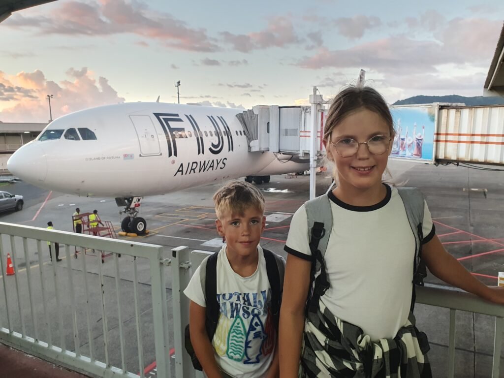 Our flight to Fiji was scheduled to leave at one o’clock in the afternoon, so we went downstairs to order a taxi before ten. The man at the reception called us a taxi, and we were told that it would take half an hour for the car to arrive. After half an hour of waiting, the taxi wasn’t there. The guy at the reception called the taxi company again to ask what the hold up was. The woman on the other end of the line claimed the taxi was already waiting for us. Well, it wasn’t. Another call later it turned out that the driver was waiting for us in front of the wrong hostel. The taxi had been booked for the YHA hostel, but the driver was waiting for us in front of the YMCA hostel. Eventually the driver found us and we made it to the airport. There we were told that our plane was about half an hour late, so there was no rush, although we had arrived a little later than we had initially thought.
