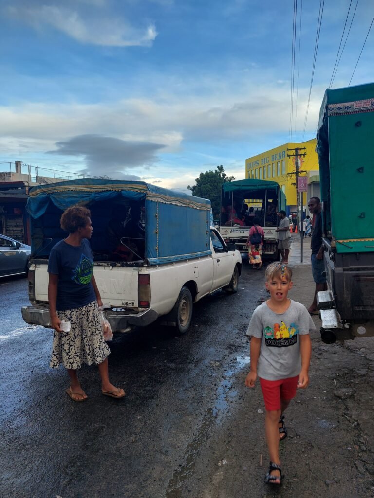When we arrived in Sigatoka after five, many shops were already closing their doors. However, we found a supermarket that was open until 8 o’clock. The selection was rather exotic. There was everything from the groceries to items for worshipping Hindu gods. Apparently there is also a large Indian population in Fiji, or at least in this area there has to be. In addition to the products on sale, we also spotted quite a few cockroaches in the shop. Fortunately, everything we bought (apart from apples) was tightly packed, and thus protected from bugs.