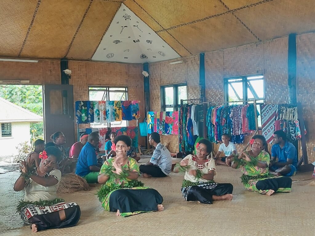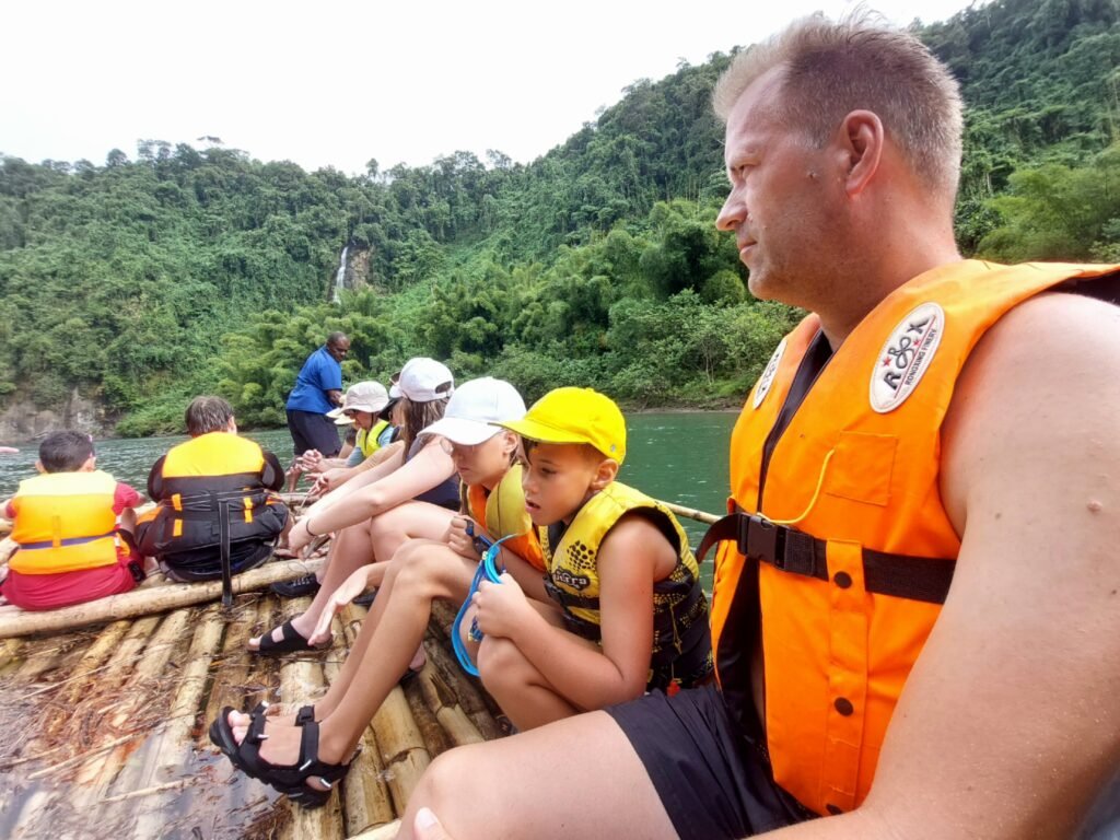 The water in the waterfall was cooler than in the sea, but it was still good for swimming. The waterfall was quite high, and the masses of water rushing down from it had dug the pond below the waterfall very deep. The local boys who were with us were jumping into the pond from the edges of the waterfall, so it must have been several metres deep. On the way back we got to experience what it was like to travel on a bamboo raft. As the raft was moving at its own slow “Fiji time” pace, after about fifteen minutes of floating we jumped back into the boats and headed back to the village. A ride back to the hotel was waiting for us there.