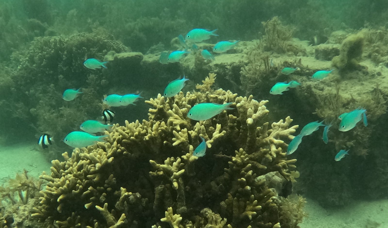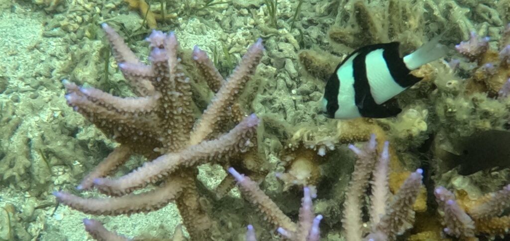 After breakfast, we went to get our snorkelling gear and headed to the beach on the other side of the road. The coral was still pretty colourless, but there were lots of different species of fish. The seabed was also full of long creatures resembling sea cucumbers. In English it is called Medusa worm. They are harmless, but many people mistake them for sea snakes, which also live here. The reef was really shallow, and again there were really strong currents in places. Sometimes you really had to use your flippers to get to where you wanted to. On the other hand, it was easy to float along with the currents. After a long snorkelling session, the kids wanted to go for a swim in the pool too. On the other hand, there’s not much else to do here apart from swimming, snorkelling and kayaking.