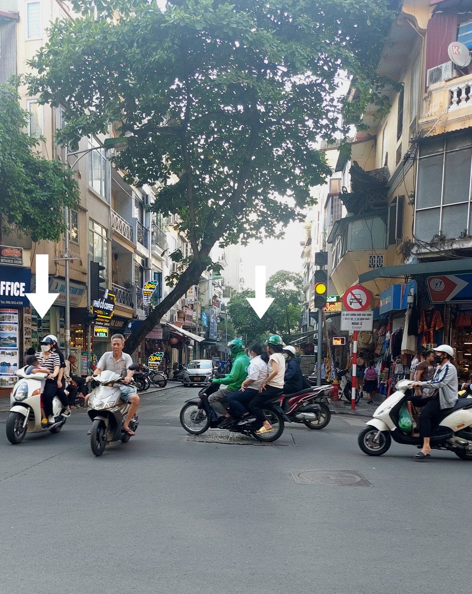 Traffic in Hanoi is chaotic. We thought Malaysian traffic was bad, but the traffic here is insane. There are traffic lights at intersections, but nobody obeys them. Everyone drives ahead and honks the horn to signal that they are coming. Here, especially at crossings, you have to pay attention and move quite fast if you want to make it to the other side of the street alive. When crossing the road, it is not a good idea to stop, but to keep moving forward, counting on scooters and cars to give way on either side. The scooter is by far the most popular mode of transport here. Naturally, most people ride their scooters without helmets. You can load an incredible amount of stuff or people on a scooter. The record we saw was two adults, two children and a dog. Unfortunately, they went by so quickly that we didn’t get a picture of them.