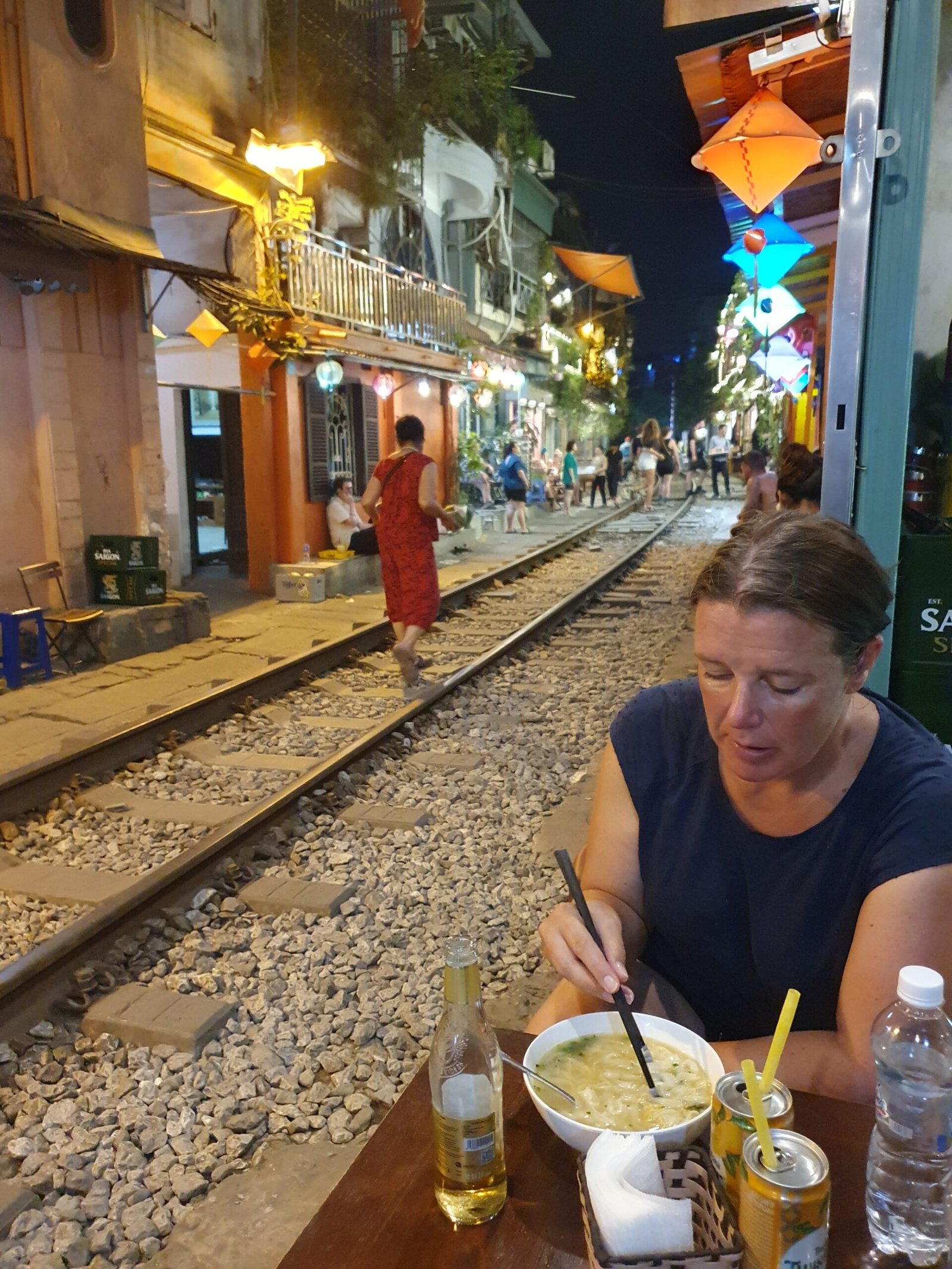 We went back to the apartment for a while to cool off. In the evening, we went out again as it was a bit cooler. Well, in reality the temperature was well over +30C, but with the sun no longer scorching, walking the streets was more bearable. Fortunately, we didn’t have to walk far, as the local “train street” was right next to our hotel.