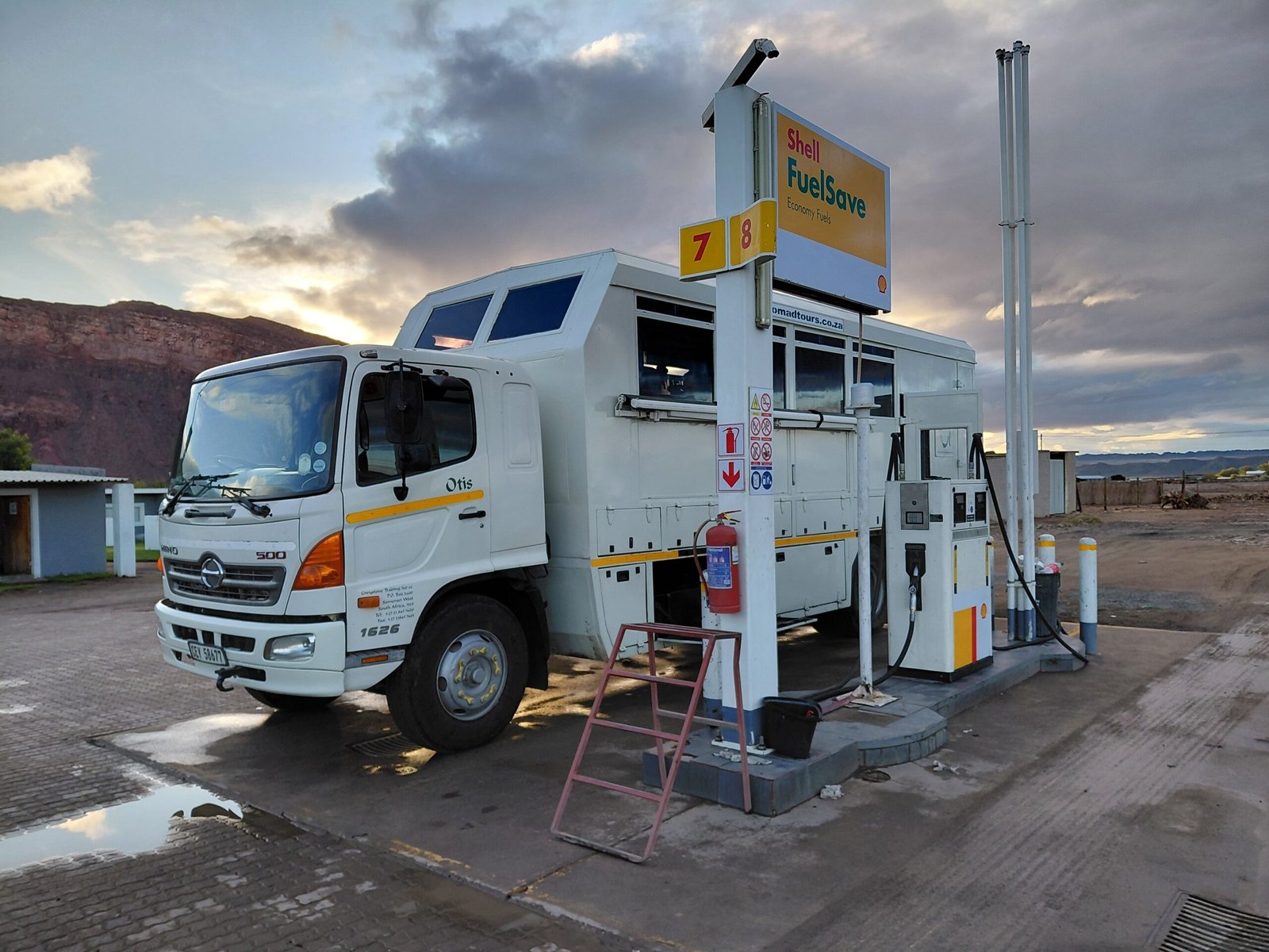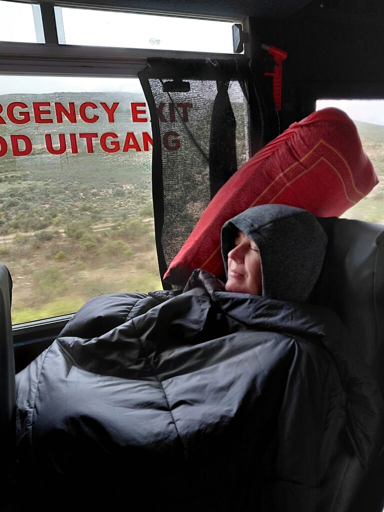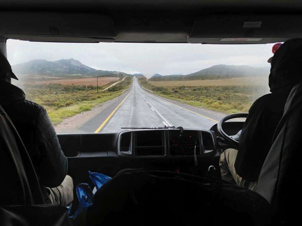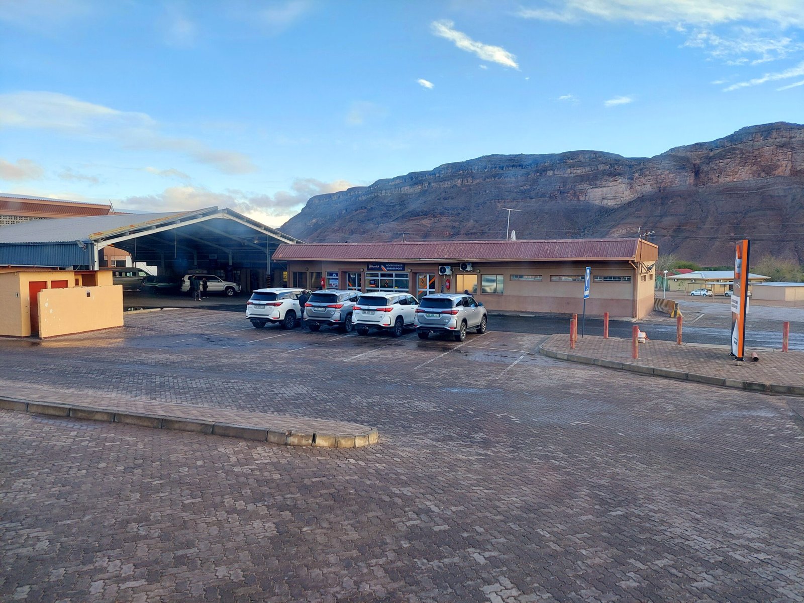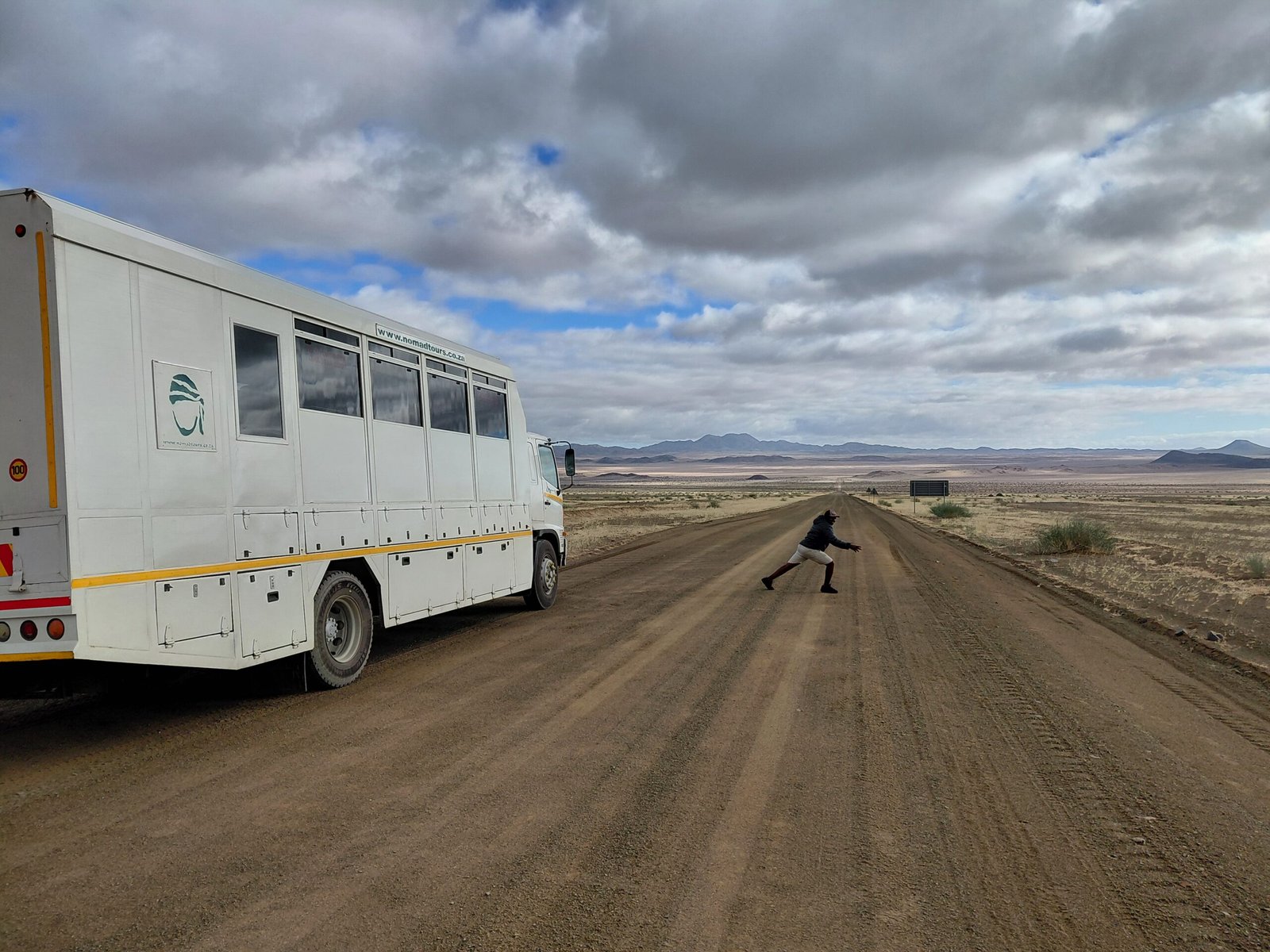 Toinen matkapäivä olikin sitten pelkkää ajamista, mutta tämän olimme toki tienneetkin etukäteen. Päivän aikana ajoimme yli 500km kohti pohjoista päästäksemme Noordoewerin rajanylityspaikalle. Namibia oli ottanut käyttöön e-viisumin huhtikuussa, joten olisi voinut kuvitella, että rajanylitys olisi mennyt näppärästi. Toisin kuitenkin kävi. Ensin Etelä-Afrikan puolella yksi ainoa virkailija syynäsi meidän kaikkien 18 kyydissä olleen passeja todella hitaasti ja perusteellisesti. Sen jälkeen passimme piti viedä vielä parille muullekin luukulle tarkastettavaksi ennen kuin saimme jatkaa matkaa kohti Namibian tarkastuspistettä.