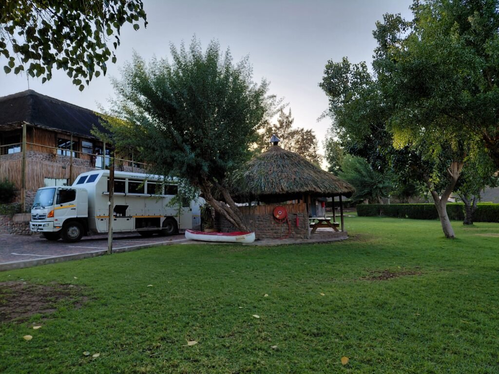Ajoimme rajalta vielä eteenpäin n. 15-20min ja jäimme yöksi Felix Unite – nimiselle leirintäalueelle Orange Riverin varrelle. Orange River on rajajoki, joka erottaa Etelä-Afrikan ja Namibian toisistaan.