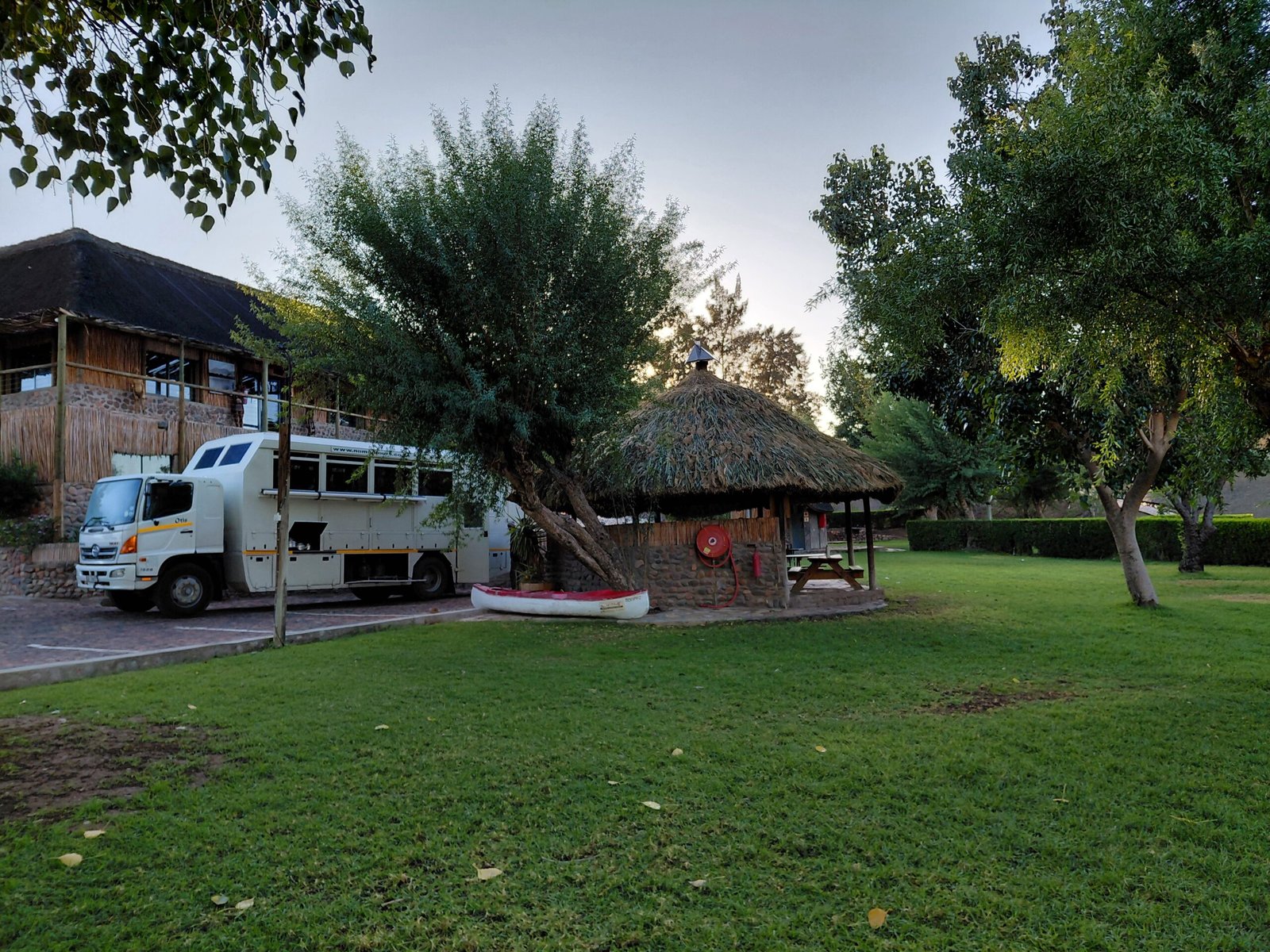 Nomad Africa on ollut sitrusfarmin vakioasiakas jo vuosien ajan. Ehkä tästä syystä farmin omistajat ovat alkaneeet tarjota Nomadin kyydissä matkaaville päivällisen ravintolassaan. Olikin mukava päästä syömään sisätiloihin, sillä koko päivän jatkunut sade oli kastellut kaikki paikat todella perusteellisesti. Valitettavasti myös telttamme olivat märät niin sisältä kuin ulkoakin. Ne olivat ehtineet kastua jo pystytysvaiheessa, koska juuri silloin alkoi sataa rankemmin pienen ripottelun sijaan. Telttojen pystyttäminen ei vie kuin korkeintaan 5-10 minuuttia, joten siitä voi päätellä, kuinka kosteissa olosuhteissa telttojamme pystytimme. Kun menimme päivällisen jälkeen telttoihin nukkumaan, meidän aikuisten teltasta piti ensin kuivailla pois parin desilitran verran vettä. Lasten teltta oli sentään ainoastaan seinistä ja lattiasta pintakostea.