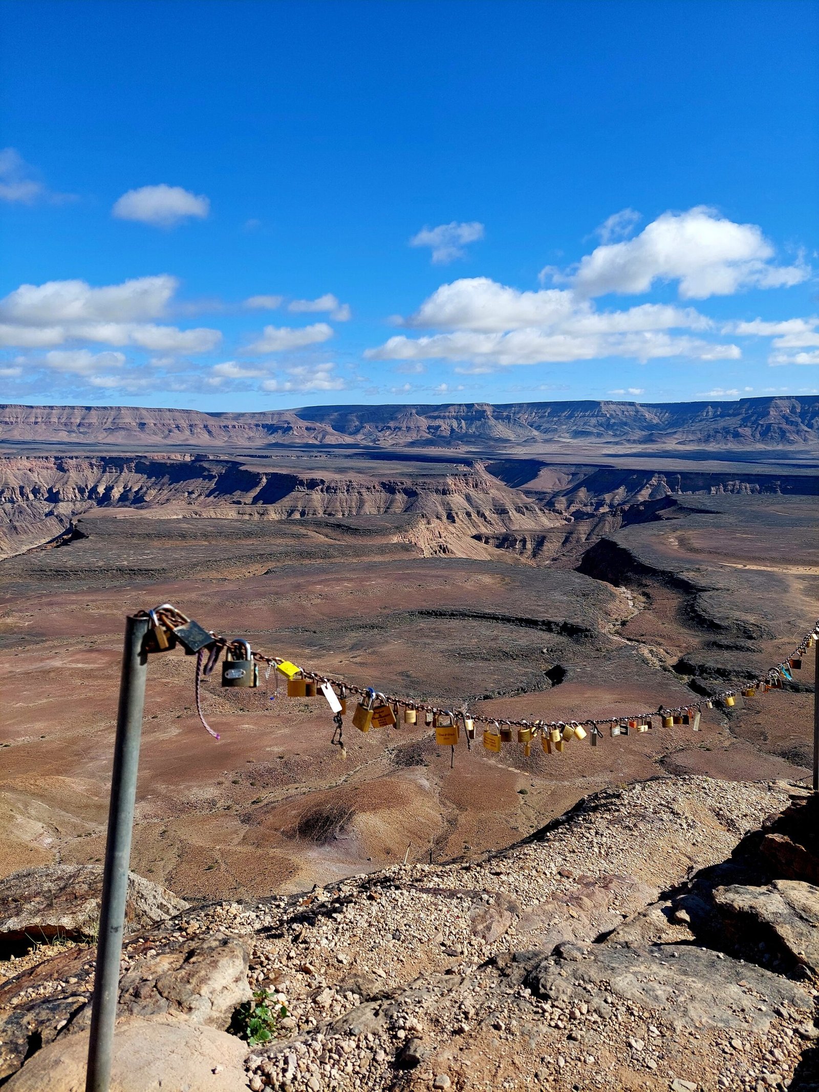 Kävelimme kanjonin yhdeltä näköalapaikalta toiselle, ja sillä aikaa Stanley laittoi meille kuorma-autolla lounasta. Nautimme lounaan upeissa maisemissa kanjonin reunalla, jonka jälkeen jatkoimme matkaa kohti seuraavaa yöpaikkaamme Keetmanshoopin kaupunkiin, Schutzenhaus Guesthousen pihaan.