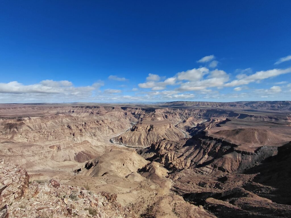 Orange Riveriltä matkamme jatkui klo 8:30 kohti Fish River Canyonia, joka on maailman toiseksi suurin kanjoni heti Grand Canyonin jälkeen. Nyt olemme nähneet siis ne molemmat. Grand Canyon on kaikessa suuruudessaan upeampi, mutta kyllä näitä Fish River Canyoninkin maisemia kelpasi ihailla.